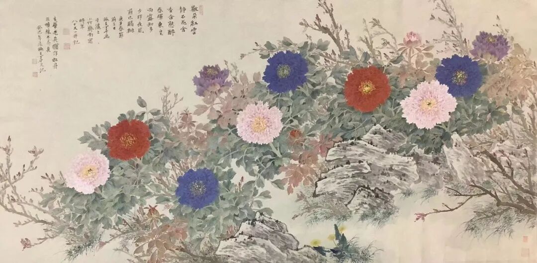 先生之花鸟,深得宋画精微之旨,兼融江南画派雅逸。勾勒细劲挺秀,无一笔浮散,一花一叶、一禽一蝶,皆肖其形、传其神,牡丹之雍容、兰蕙之清疏、雀蝶之灵动,尽入毫端。设色妍而不艳,淡冶天成,墨色与彩韵相融,既守院体画的工谨法度,又含写意之空灵,于纤微处见匠心,于清丽中藏古意,观之如沐春风,意韵悠长。