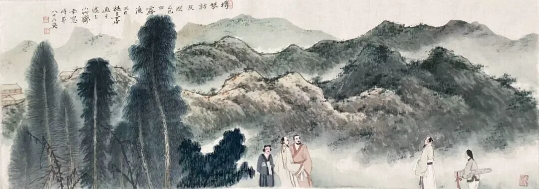 先生写人物,形神兼备,风姿清雅。线条随形赋势,勾勒衣袂则婉转流畅,刻画眉目则传情达意,仕女之温婉、高士之清逸,皆形神凝粹,意态宛然。设色简淡古雅,笔墨不事繁饰,于工细中见气韵,于简约中藏丰蕴,既脱却俗态,又含古意,与花鸟、山水之韵相融,一脉相承其清丽雅致的画风。