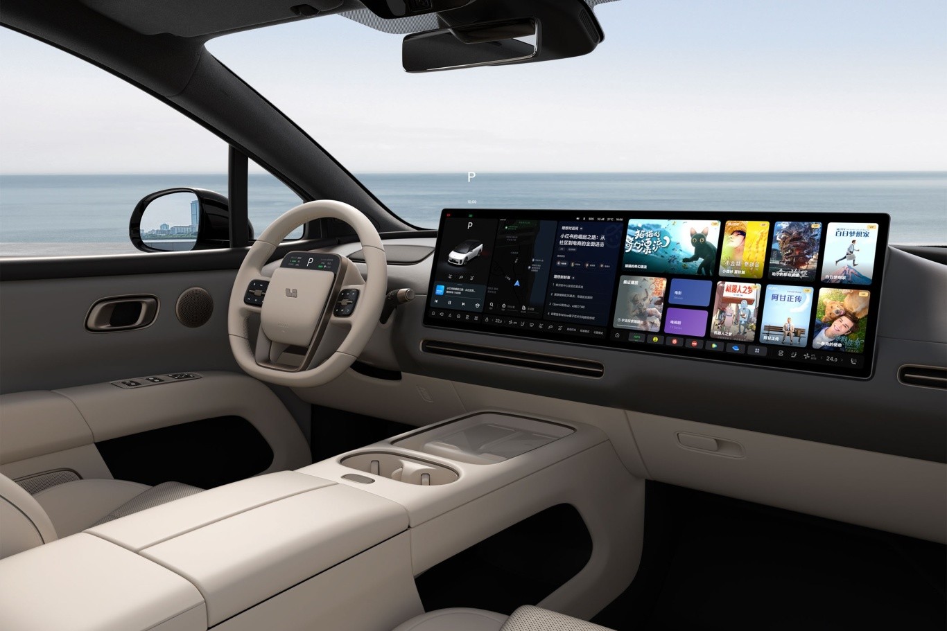 座舱方面,“T”字形中控台上配备15.7英寸3K双屏,内置高通骁龙8295芯片,车机流畅度值得肯定;方向盘手感粗壮,右后方集成换挡机构,便于驾驶员操控。