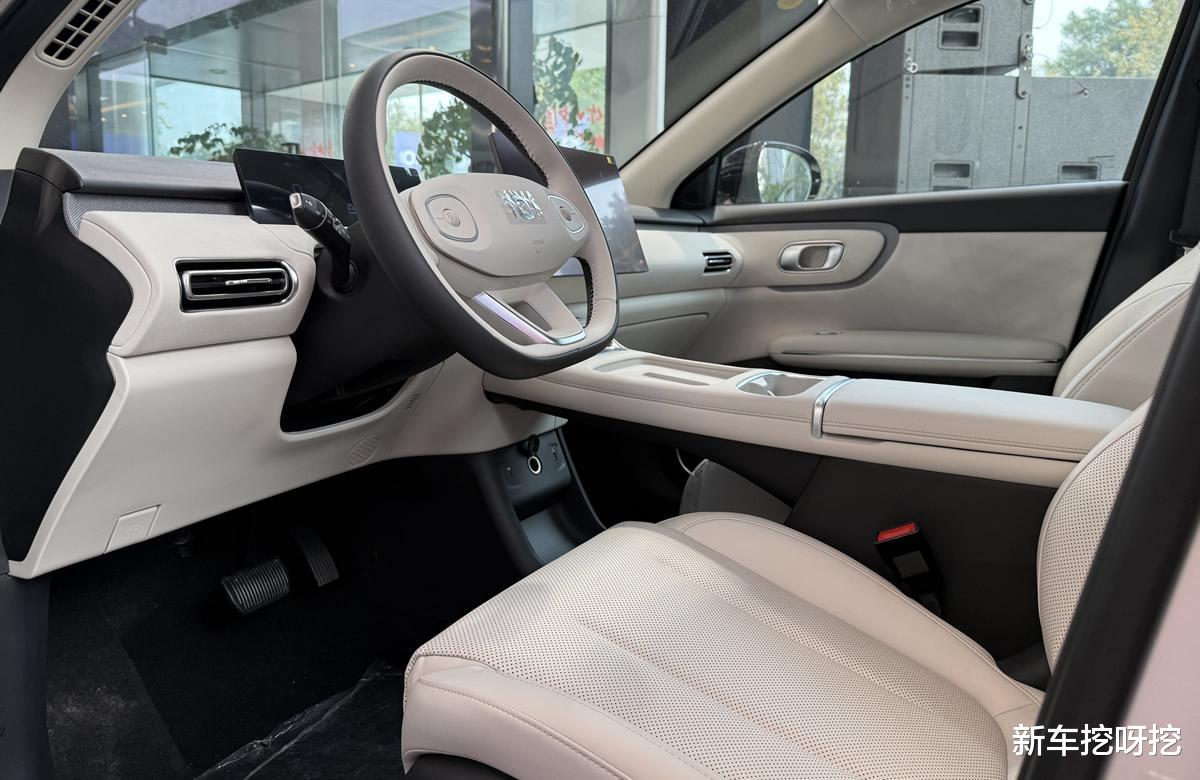打开车门,可以看到全新Q05的内饰与经典款相比,同样有了翻天覆地的变化,简约时尚,采用电子怀挡,配备10.17英寸液晶仪表,15.6英寸 2.5K中控屏,256色流光氛围灯、前排50W手机无线快充等实用性的配置。