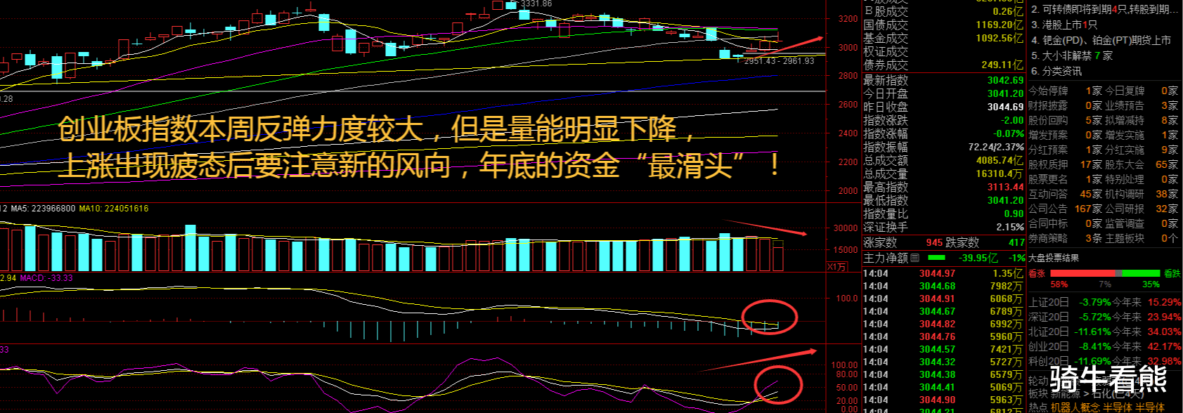 本周全球金融市场出现反弹行情,从目前的外盘消息面来看,美股这一波反弹大概率又要历史新高,所以外盘资金又开始活跃了起来。A股市场本周跟随反弹的同时,带动了个股出现反弹迹象,暂时来看只能说跌破60日均线的个股数量少了一些,但是外资一方面看多A股,另一方面又公开做空锂矿、汽车等个股,整体环境还是内忧外患。年底行情留给我们的时间不多了,大行情是很难出现了,这里还是谨慎参与,同时择机把前期的套牢标的伺机而出,这才是上上策。