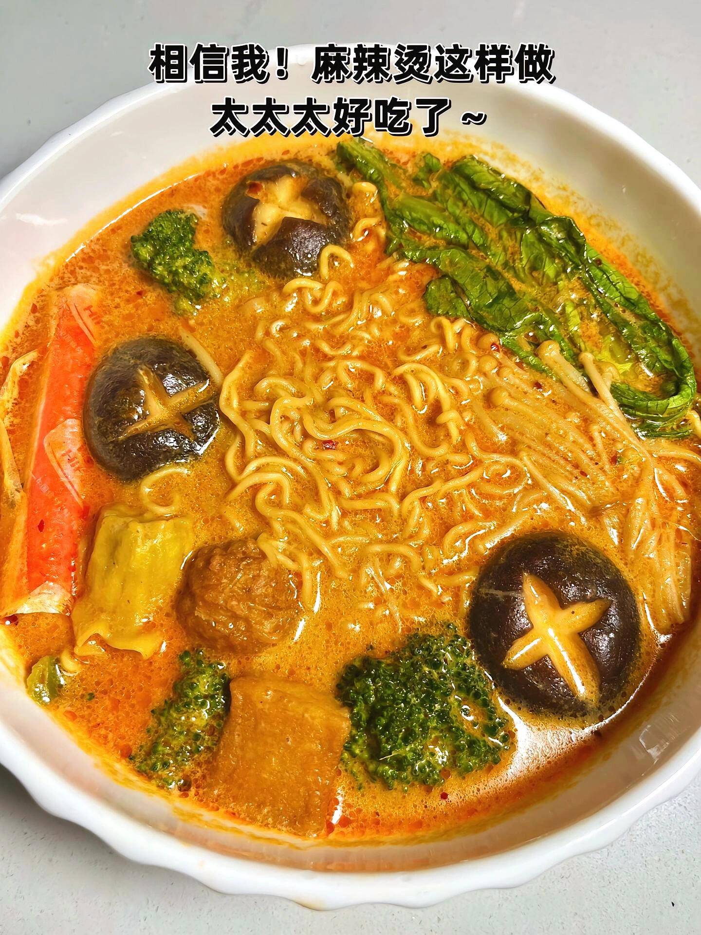 刚好冰箱里囤了一堆丸子和蔬菜,我一拍大腿:“自己做!” 结果第一次就成功了——奶白的汤底飘着红油,蔬菜翠绿,丸子Q弹,面条吸饱了汤汁,香到连我家猫都扒着碗边叫。最绝的是,汤底用牛奶和火锅底料熬的,健康无添加,喝完胃里暖暖的。