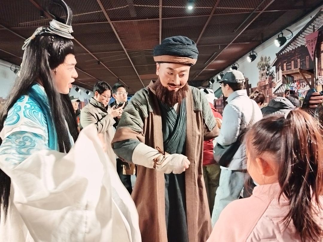 活动采用“专业演员演绎+员工角色扮演+商户角色串联”的模式,超多专业演员及NPC身着西夏服饰倾情演绎,一亮相便吸引大批游客围观拍照,其中西夏“麻魁”巾帼女兵以NPC形象亮相,金庸笔下乔峰、西夏公主等经典角色也惊喜登场,与各族商贾、百姓形象共同构筑起鲜活的西夏社会图景。现场同步开展的沉浸式穿越体验、非遗文化感知、主题旅拍等多项业务,金、银币及银票游戏深受游客喜爱,引得游客争相参与互动领取,每一处体验点位都洋溢着喜庆祥和的氛围,游客的获得感与趣味性拉满。