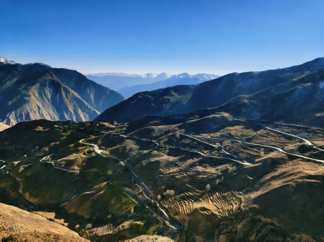 又名“九十九道拐”,从业拉山倾泻至怒江峡谷,海拔骤降近2000米,连续发卡弯蜿蜒如巨龙。