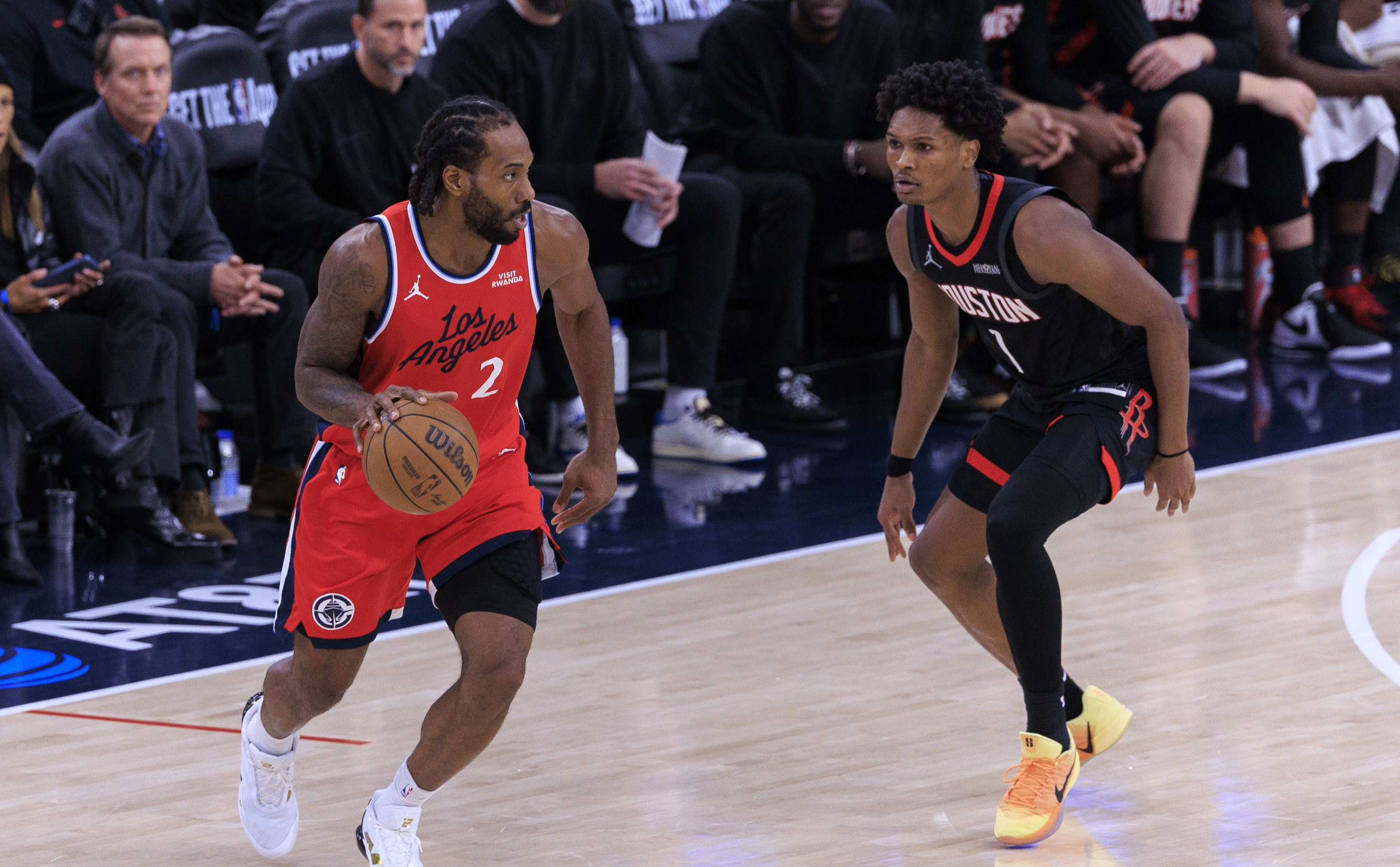 两队的上次交手,乌度卡用伊森单防莱昂纳德,让阿门对位邓恩,从而进行协防和包夹,在替补衔接段用电风扇对位莱昂纳德,但是如果伊森和电风扇都不打,那么火箭的轮转球员将变成奥科吉和泰特,奥科吉的防守能力并不差,但是相较伊森体型和身高相对吃亏,泰特的体型和身高虽然能对位对得上莱昂纳德,但是本赛季泰特长时间不在轮转阵容中,阶段性的偶尔被乌度卡予以奇兵使用,效果在赛季初糟糕,在近期还不错。