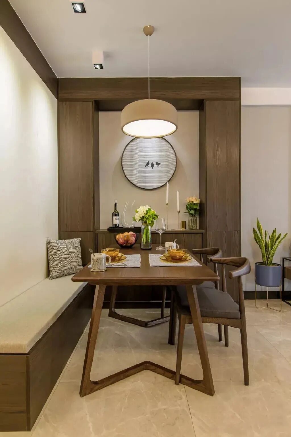 实木的餐桌椅搭配定制的实木卡座,整体感很强,实用极了。