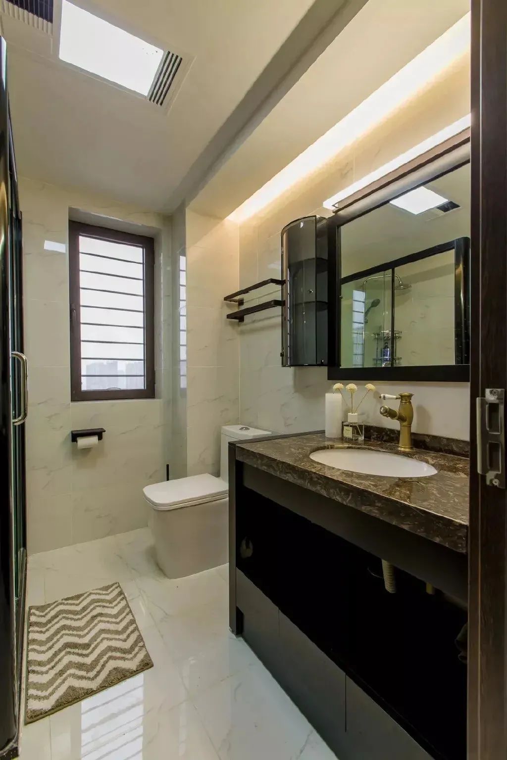洗手台也是定制的,因为想要家里的设计统一,水龙头的选择也是金属感为主的设计,和整个空间的搭配就很好看了,大气又轻奢。卫生间的装修一点都不马虎。