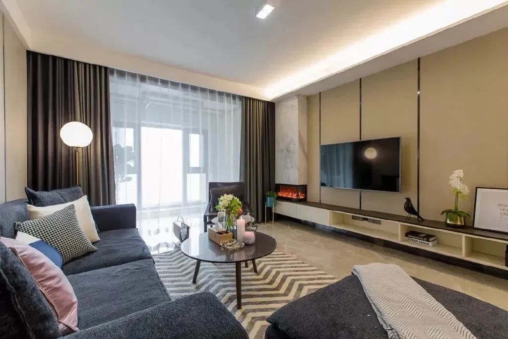 这套房子的面积100平米左右,公摊去掉了一小部分的空间,做成了两房的格局,整个室内的功能区空间比例合理,而且装修设计是采用现代风为主的设计风格,现代时尚感很强,入户进来的玄关空间就让人很满意了,整个室内的柜子定制设计实用又美观,父母看了都觉得很满意。
