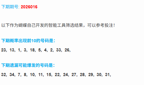 本期文章开始,蝴蝶要分享的规律,是一组组合号码,对应的号码是05,13,16和23,30,本期可以考虑1到2个号码。