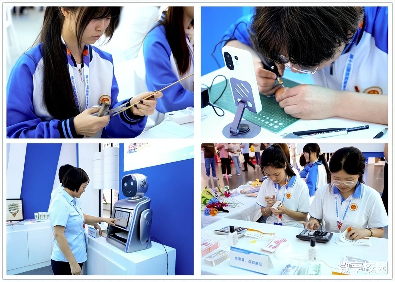 展会期间,陕西财经职业技术学院党委书记高玉峰、校长程书强等校领导全程驻场指导工作。学校精心打造的144平方米特装展位成为展会焦点,通过动静结合的创新展示方式,全方位呈现了该校的办学特色和育人成果。动态展示区设置了麦秆画制作、传票算与点钞表演、财务机器人演示、安防机器人互动、3D打印技术展示等十余项特色项目,生动展现了该校师生的专业技能和创新成果;静态展示区则通过图文展板、视频影像、实物展品等形式,系统展示了该校在大思政建设、技能竞赛、产教融合、科研服务等方面取得的丰硕成果,吸引了众多参观者驻足观看、互动交流。