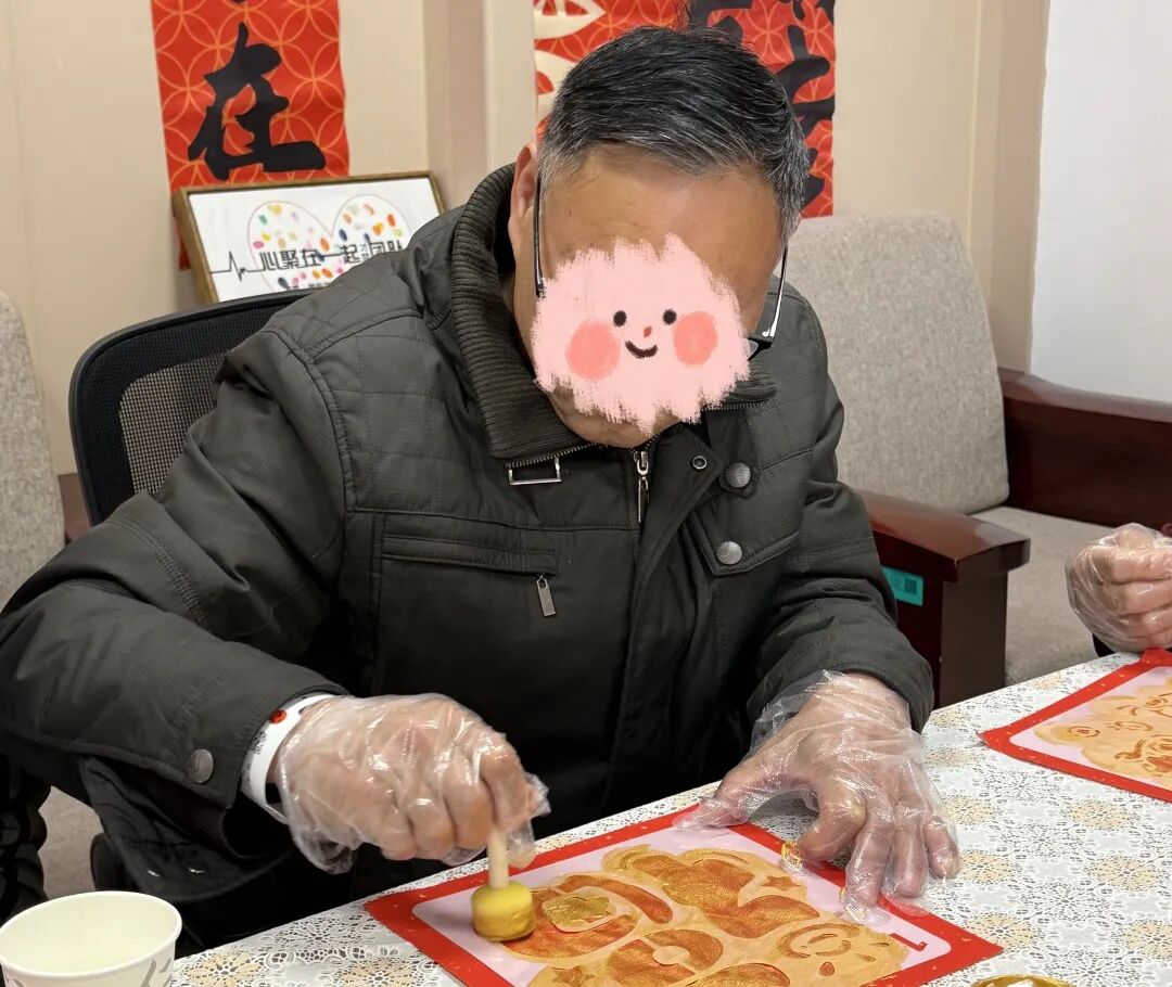 为了让患者沉浸式感受年俗,活动特别安排了拓印福字环节。老人们手持模具,细心按压、稳稳拓印,不一会儿,一个个端正喜庆的“福”字便跃然纸上。红纸映衬着笑脸,福气流转于掌心,不少患者看着自己的作品,连连赞叹:“好看、吉祥,真有年味!”