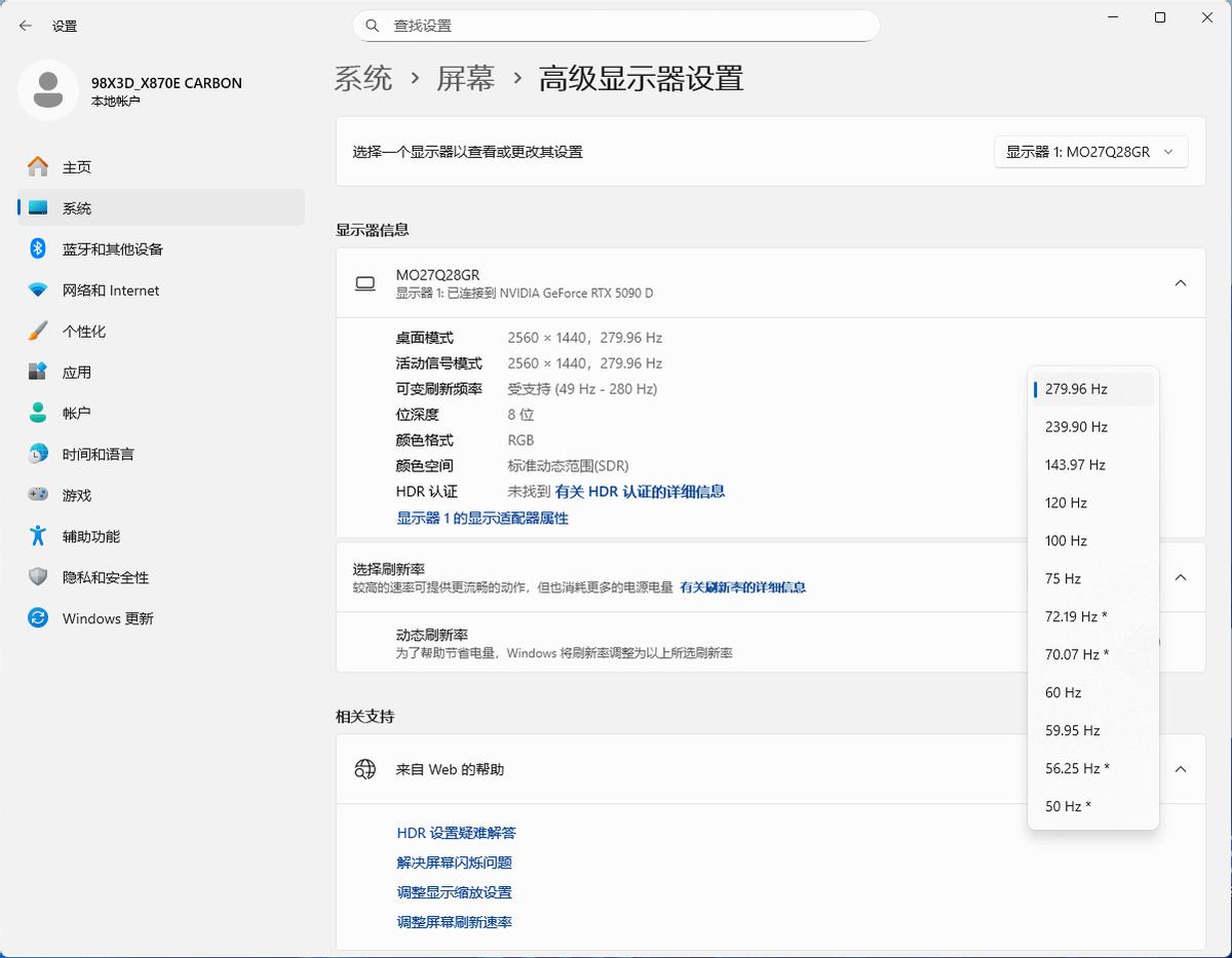 对于重视竞技体验的玩家,显示器的动态性能至关重要。MO27Q28GR在2560x1440分辨率下能够提供280Hz刷新率的完整支持。通过专门的测试验证,这一刷新率在实际使用中能够实现画面轨迹的连贯呈现,将拖影现象控制在难以察觉的程度。配合0.03ms的灰阶响应时间,在《CS2》、《无畏契约》等需要快速反应的第一人称射击游戏中,能够提供清晰锐利的动态画面。而为了确保不同硬件平台的兼容性,该产品同时支持AMD FreeSync Premium Pro与NVIDIA G-SYNC Compatible技术,有效协调显卡输出与显示器刷新之间的同步关系。