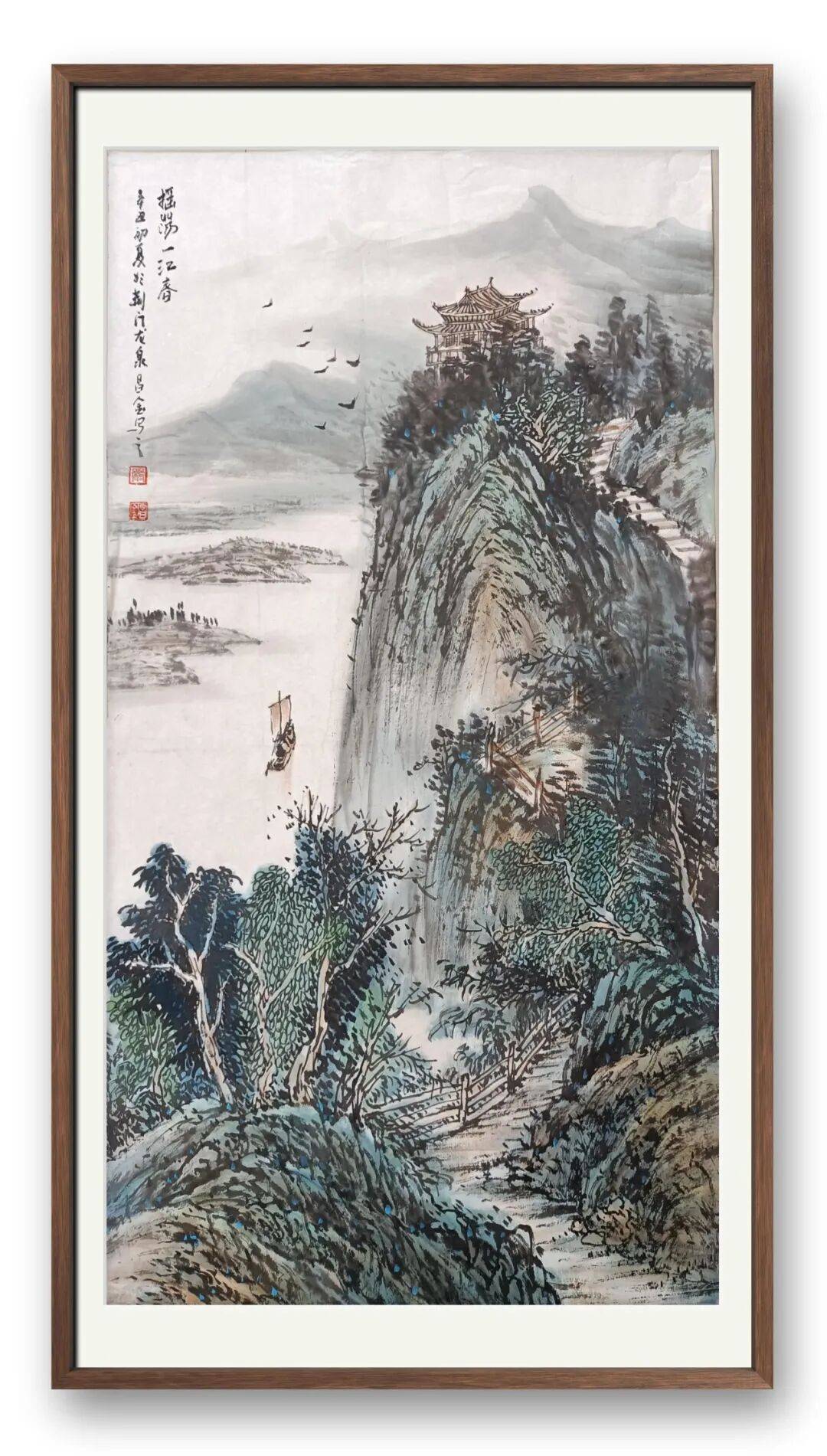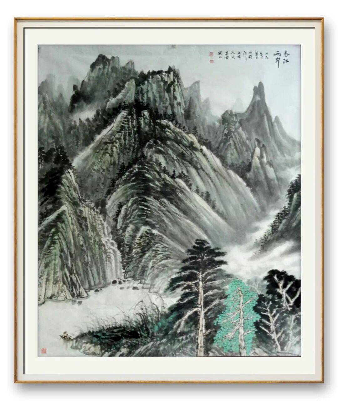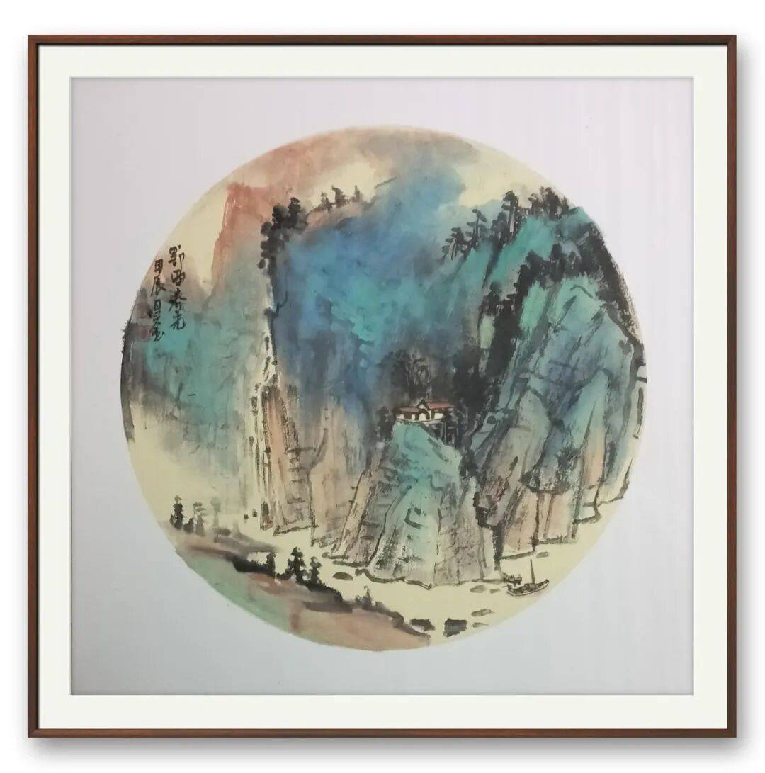 他坚守传统而不墨守成规,在古典勾皴点染技法基础上,融入生活观察,打破程式化束缚,让作品兼具生活气息与当代审美。远山含黛、近水含烟,林间屋舍、溪上渔樵,既延续中式山水“可游可居”的追求,又赋予作品鲜明个人特质,每一笔都透着对山水的敬畏、对艺术的赤诚。