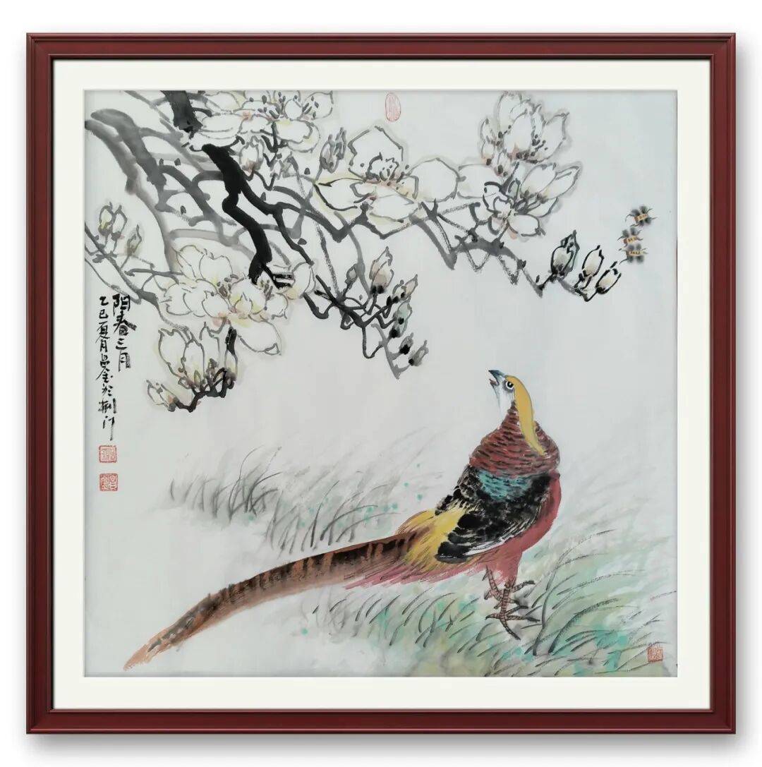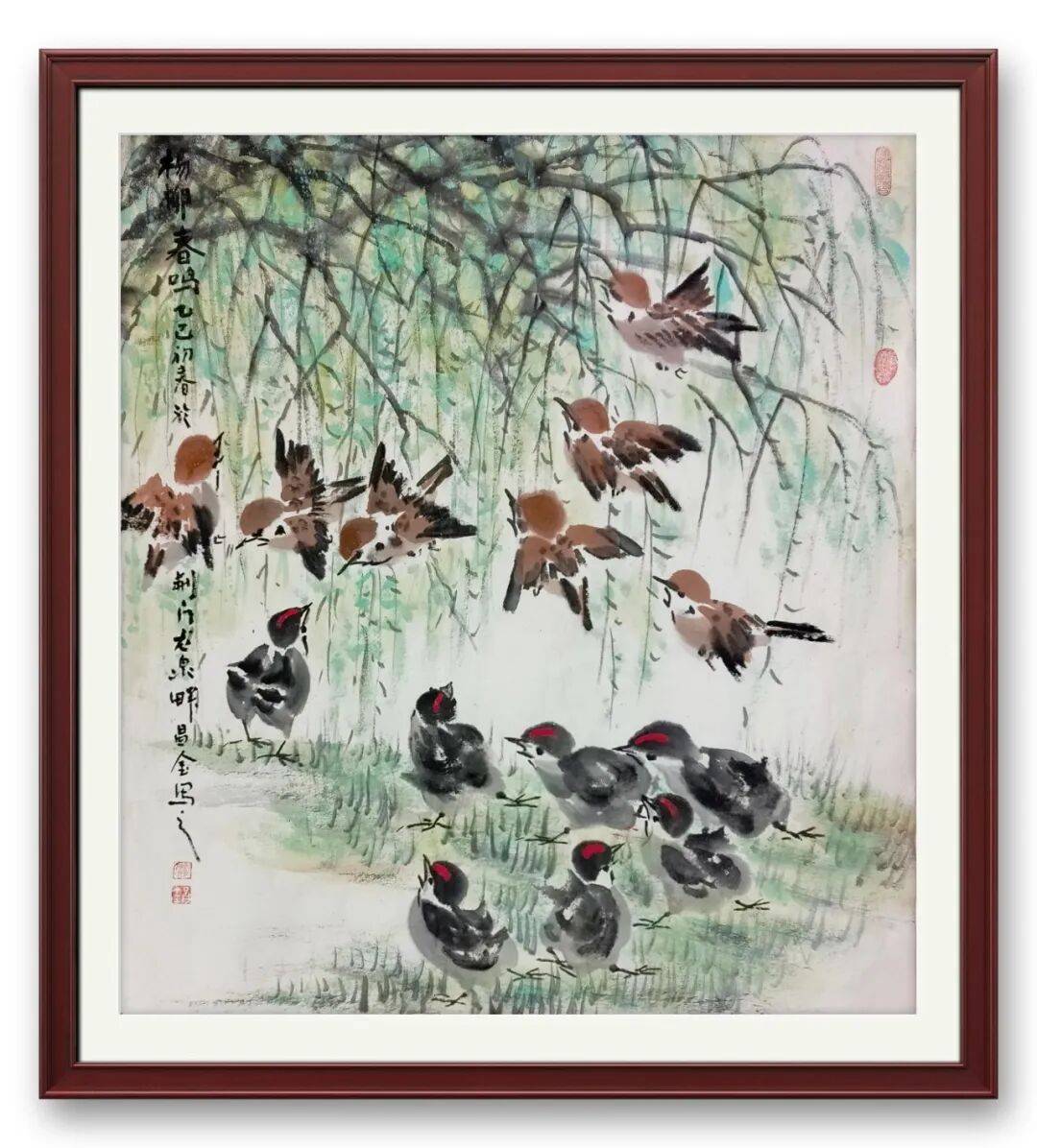 严昌金兼擅花鸟,其花鸟作品延续山水笔墨的厚重底蕴,又添灵动意趣。他以简驭繁,笔墨简练而传神,墨色清雅温润,勾勒花鸟情态栩栩如生,不刻意追形,重在传韵。荷影清疏、雀鸣枝头,皆藏自然本真,笔墨间既有传统文人花鸟的清雅风骨,又融入自身生活感悟,简约中见格调,淡雅中藏深情,与山水创作相得益彰,尽显其全面的艺术造诣。