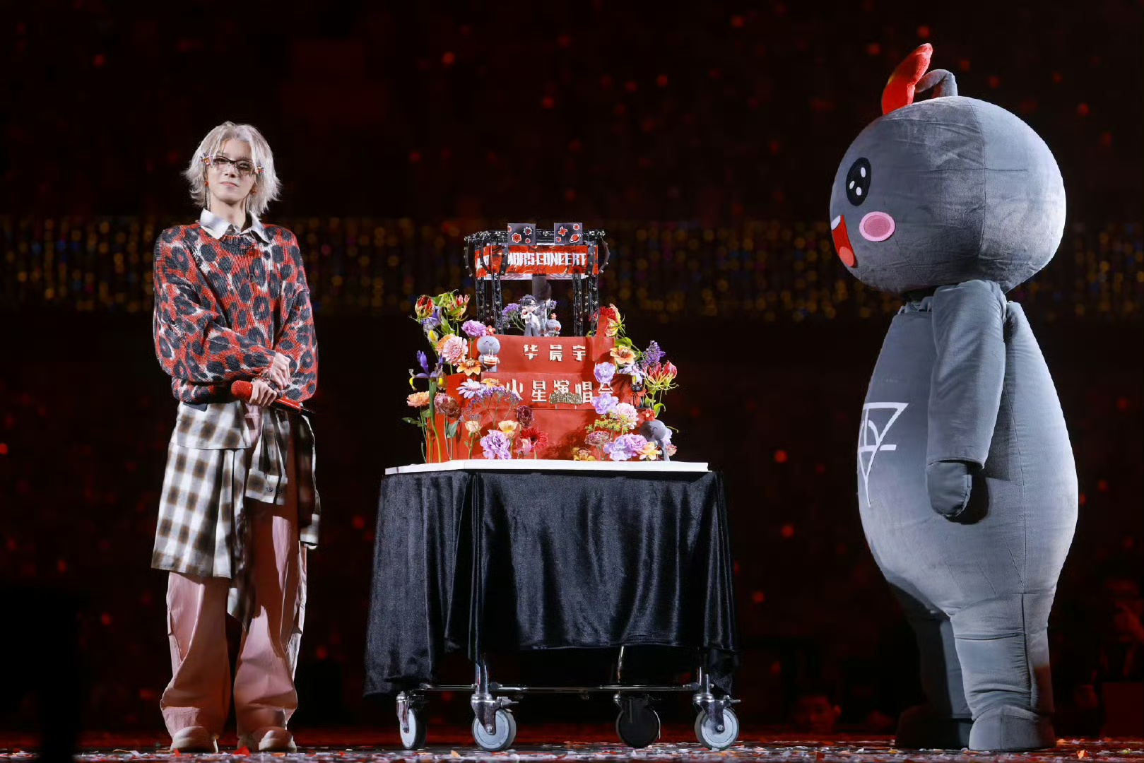 这枚唇印的设计,远不止于视觉装饰,更承载着深刻的叙事与情感隐喻。它巧妙地衔接了演唱会前后的情感脉络,成为一种极具仪式感的舞台符号。在前一晚的演出中,他曾与全场粉丝完成了一场关于“最后一吻”的浪漫互动,而颈间的唇印,则是将那份口头告白转化为具象的视觉延续。它象征着告别旧岁的仪式,也代表着对新一岁的浪漫献礼,将个人的情感、年龄的节点与艺术表达融为一体,赋予了舞台更深沉的情感厚度。
