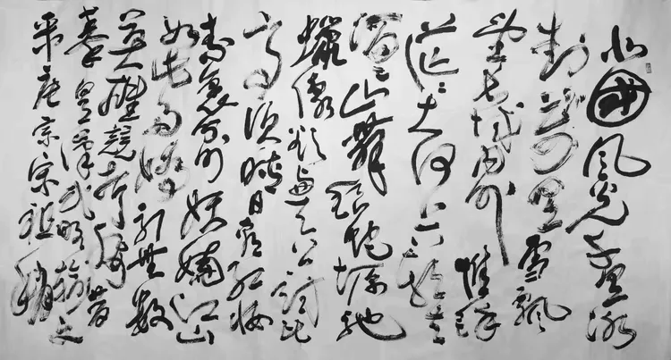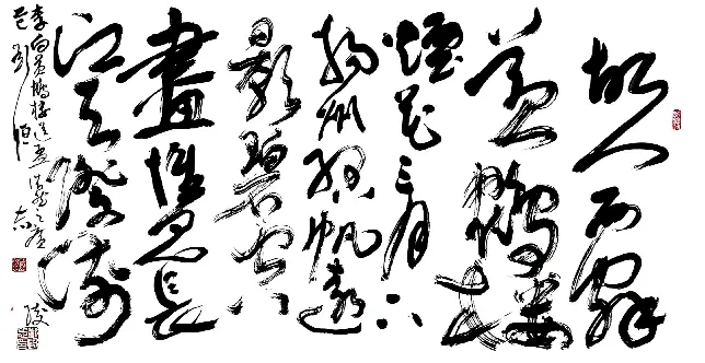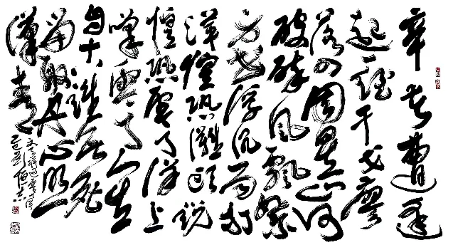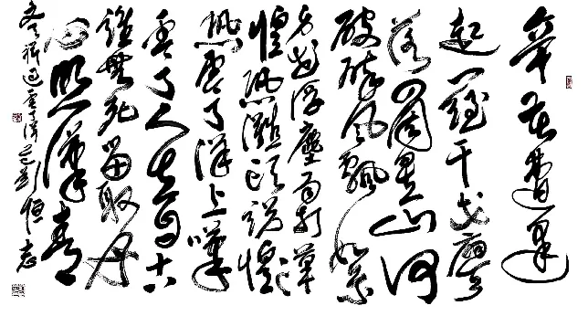 刘恒志教授深耕翰墨数十春秋,熔铸历代碑帖精髓,兼收百家笔法神韵。其作章法开合纵横,承天地阴阳之理,疏密、欹正、虚实相生相融,幅幅皆成天地阔达之境,气韵浑然;技法博采古今之长,篆隶之朴拙、行草之灵动、楷法之端严,熔于一炉,提按使转藏古意,点画狼藉见新声,笔笔贯通古今法度,自成一家风骨。