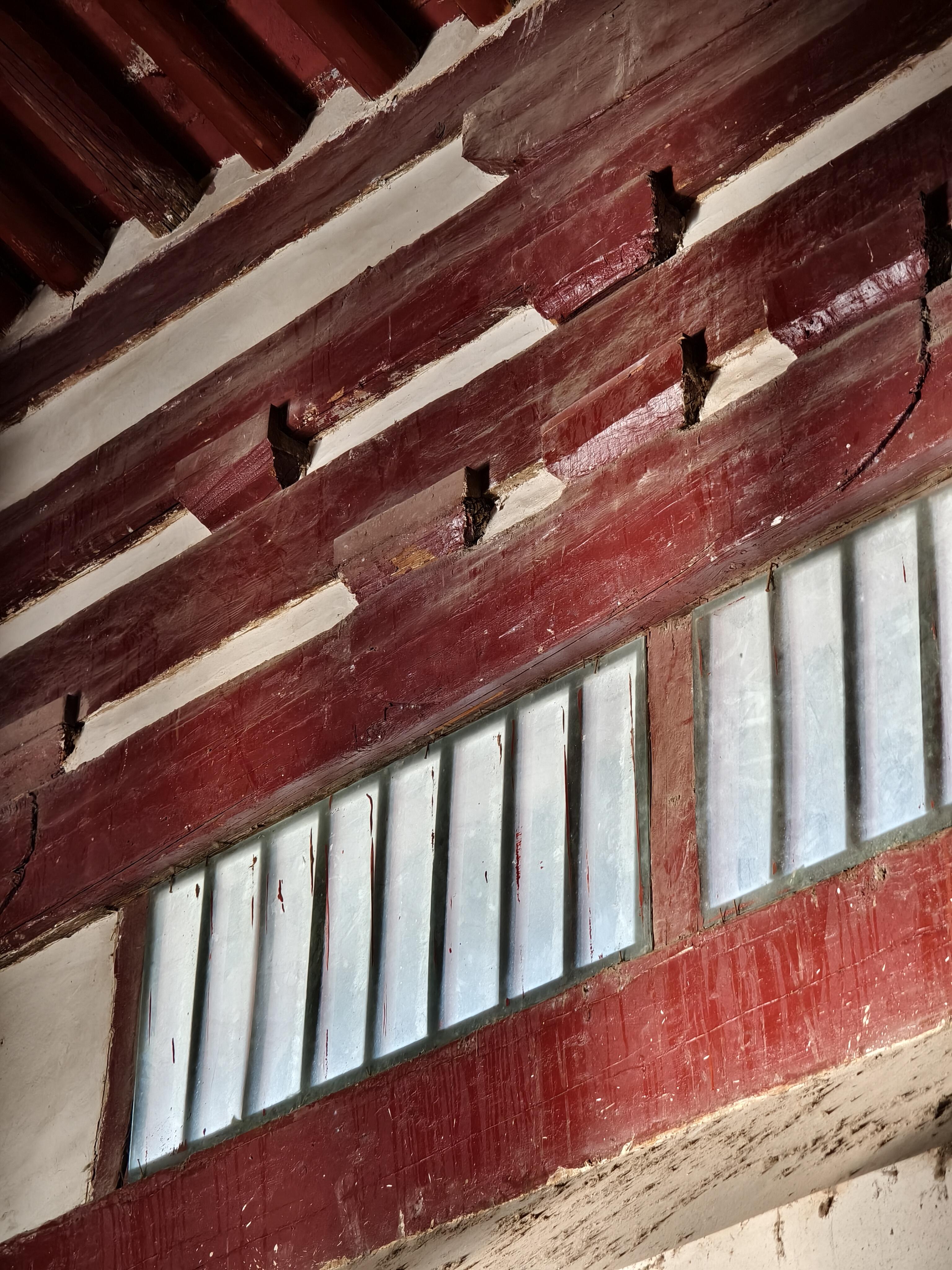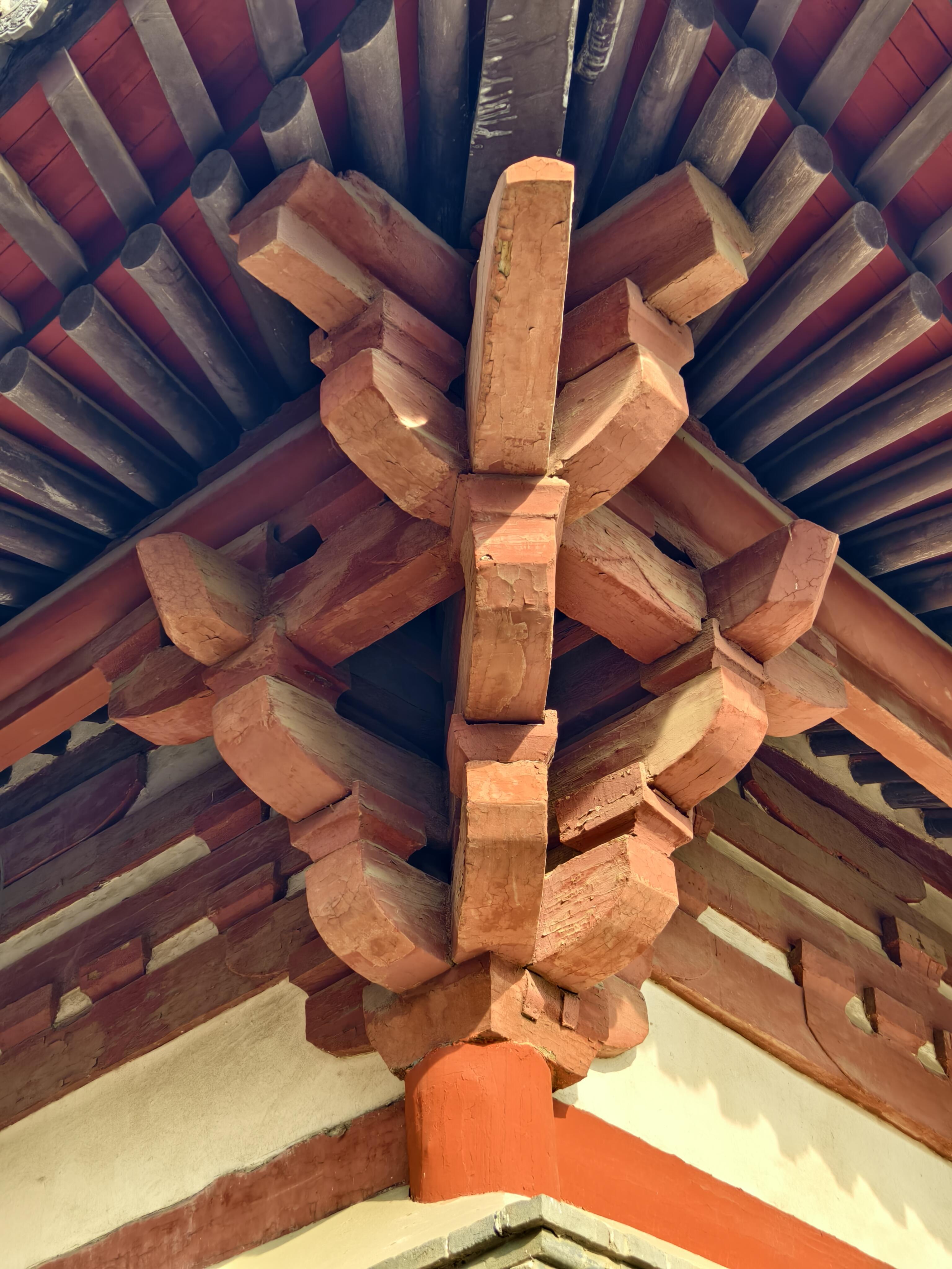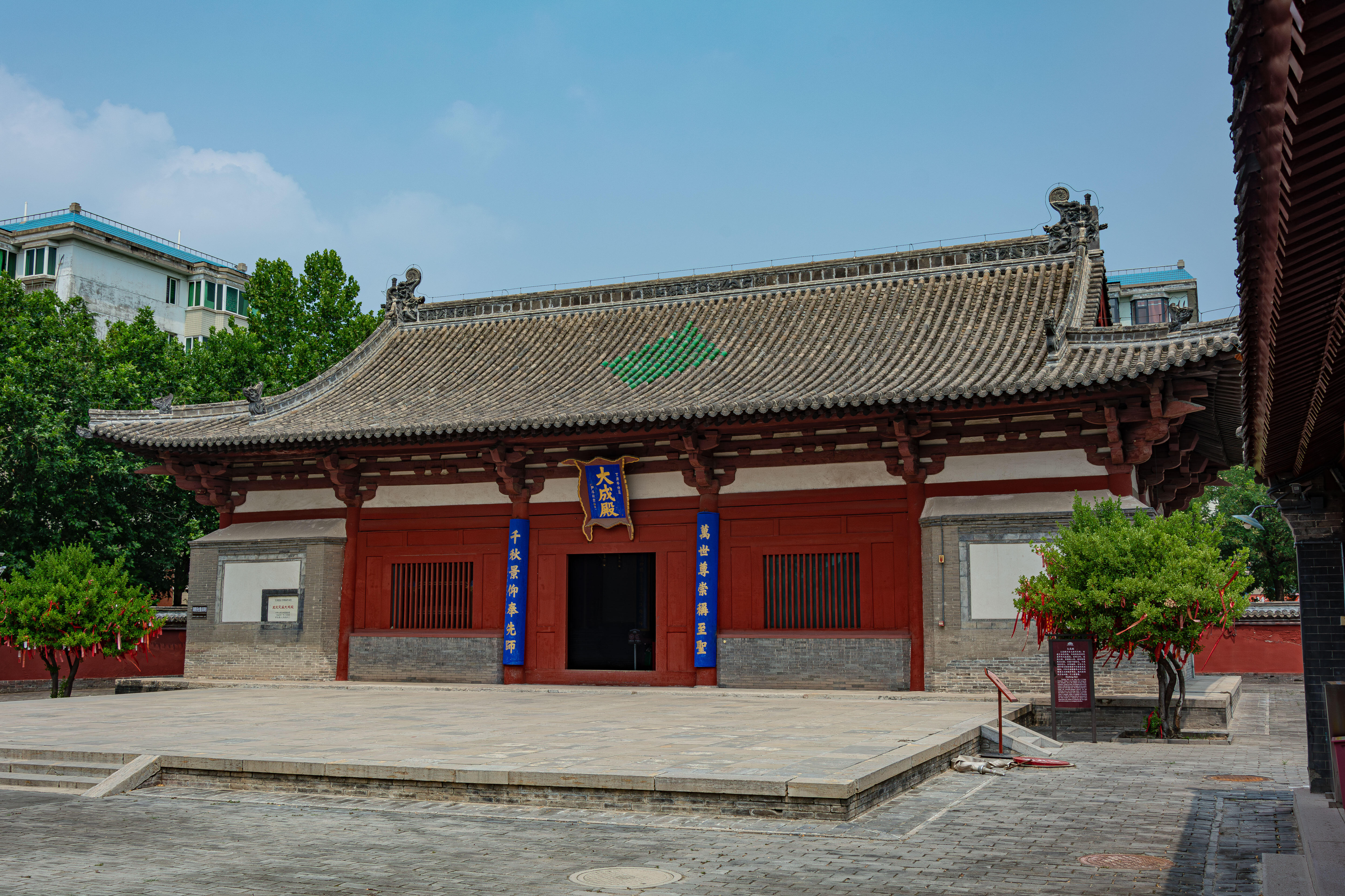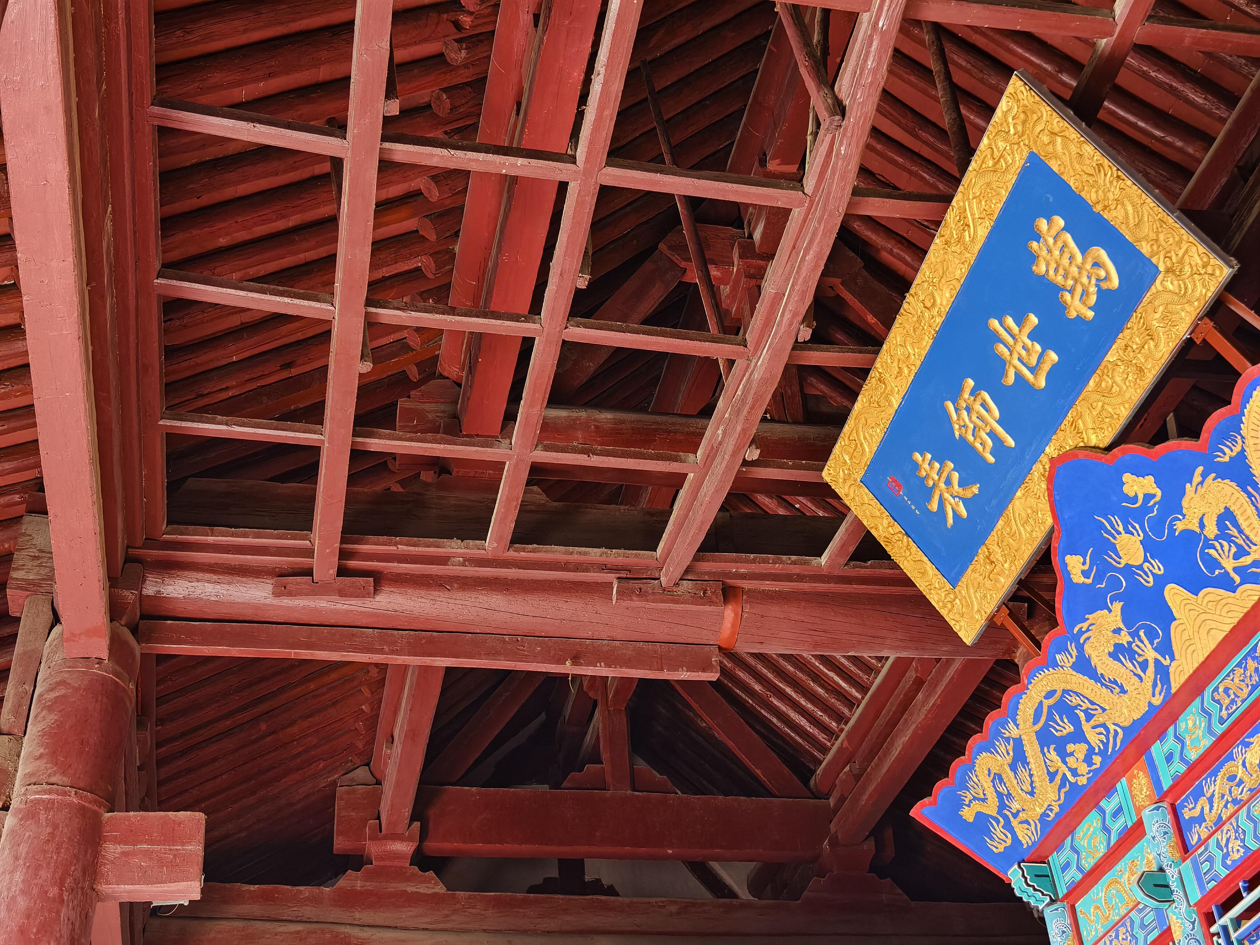 你凑近了看就知道它有多“怪”。单檐歇山顶,面阔五间,进深三间,按说该是规规矩矩的文庙模样,可梁架上那些斗拱却透着股“不合时宜”的野劲儿。普通明代建筑的斗拱大多方方正正,装饰性大于实用性,可这儿的斗拱却像老树枝似的往外挑着,每个榫卯都卡得严丝合缝,透着股五代时期“能扛事儿”的结实劲儿。我上次去的时候,碰到个头发花白的老工匠,他踮着脚摸斗拱的木缝,嘴里念叨:“你看这木头的包浆,至少得有上千年,明代工匠没这手艺。”旁边立马有个戴眼镜的年轻人反驳:“包浆能造假!你看殿角那几块砖,上面刻着‘洪武年修’,明明是明代的!”老工匠急了,掏出手机翻老照片:“这砖是后来补的!梁思成1933年拍的照片里根本没有!”两人吵得面红耳赤,最后还是景区讲解员打圆场:“您二位说的都有道理,这殿本来就没吵明白。”