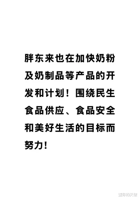 于东来在自己的社交媒体上说胖东来正在加快奶粉和奶制品的开发与计划,围绕食品安全,民生食品供应等目标而努力!