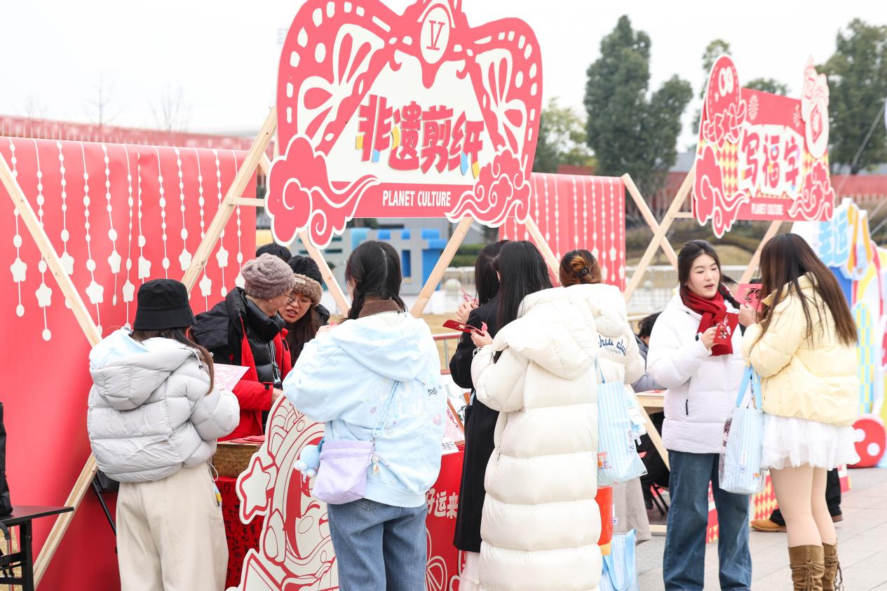 在非遗与美食体验方面,游园会设置写福字、非遗剪纸等传统手作项目,观众可亲手参与制作,在体验中感受新春文化的仪式感与传承意义。同时,小吃摊位贯穿游园动线,为现场增添浓厚的生活气息,使文化体验与节庆氛围自然融合。