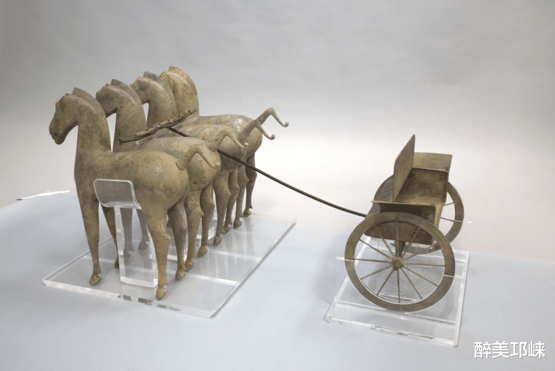 馆内,一件西汉驷马铜车,带着千年前的气势穿越而来。四匹骏马造型雄浑,昂首齐驱,既是古代邛崃高超铸铜工艺的实证,也是尊贵与通达的象征。馆内的省油灯、“临邛”文字杯、邛三彩盘,静静诉说着邛崃大地的烟火故事。