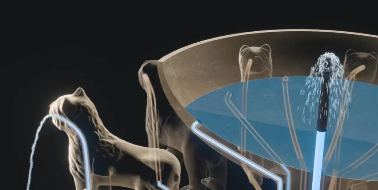 狮子报时的原理这是怎么做到的呢?其实原理很简单。在12个狮子上面有个大碗,这个碗上面有个管子不断往里灌水。碗底有12个洞,每个洞都连着下面不同狮子的嘴巴。这些洞的高度各不相同,工匠们经过精密计算,使得水从一个洞流到下一个洞的时间正好是一时辰。