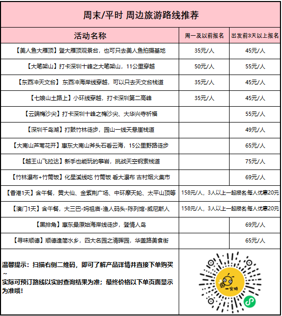 周末旅游线路推荐🌟深圳周边旅游线路推荐: