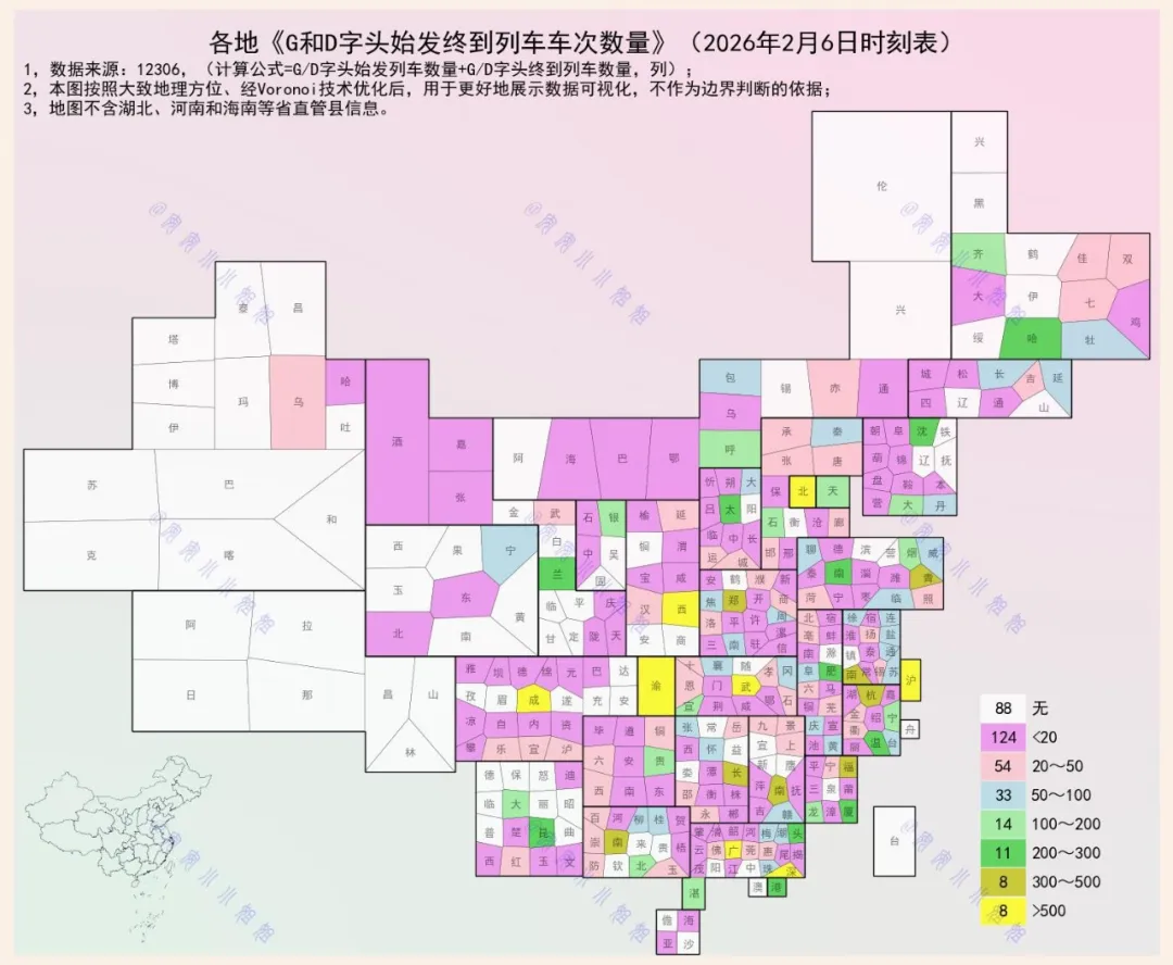 为了让统计更具时效性,这一篇我们所统计的高铁,指正在运行中的、G字头或D字头的列车数量。
