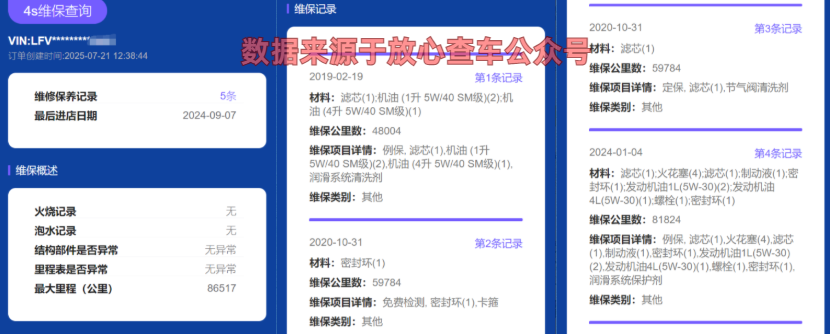 核心:直接调取4S店原始维保档案,数据100%权威,能查到最详细的维修、保养细节,无遗漏。