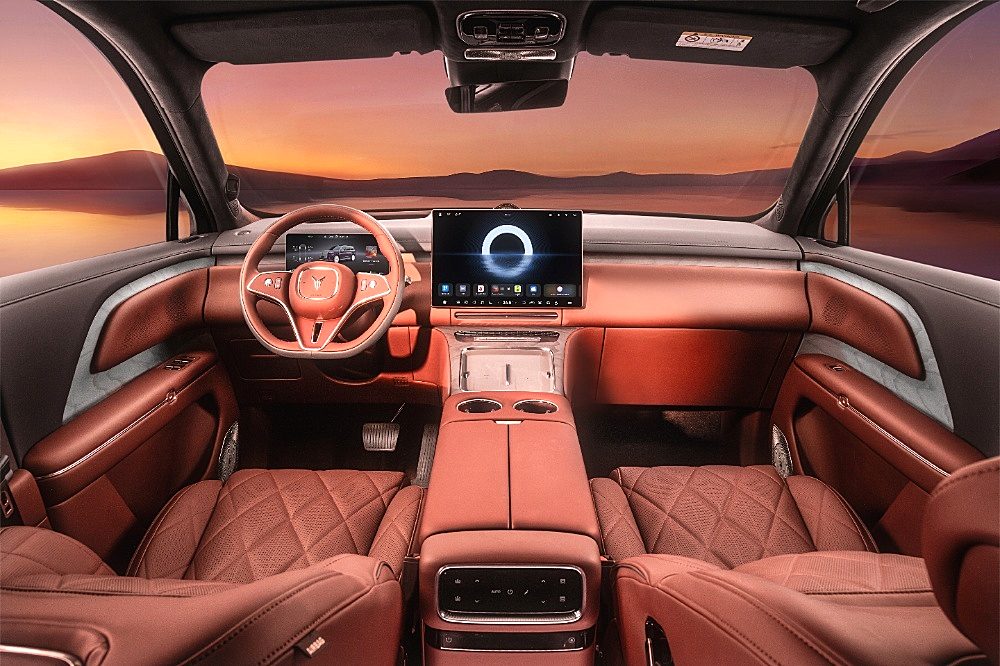 动力方面,腾势N9搭载由2.0T涡轮增压发动机与前后三电机组成的插电式混合动力系统。系统综合功率高达680千瓦,实测零百加速仅需3.9秒,性能足以媲美超级跑车。在续航方面,其CLTC纯电续航202公里,综合续航1302公里。