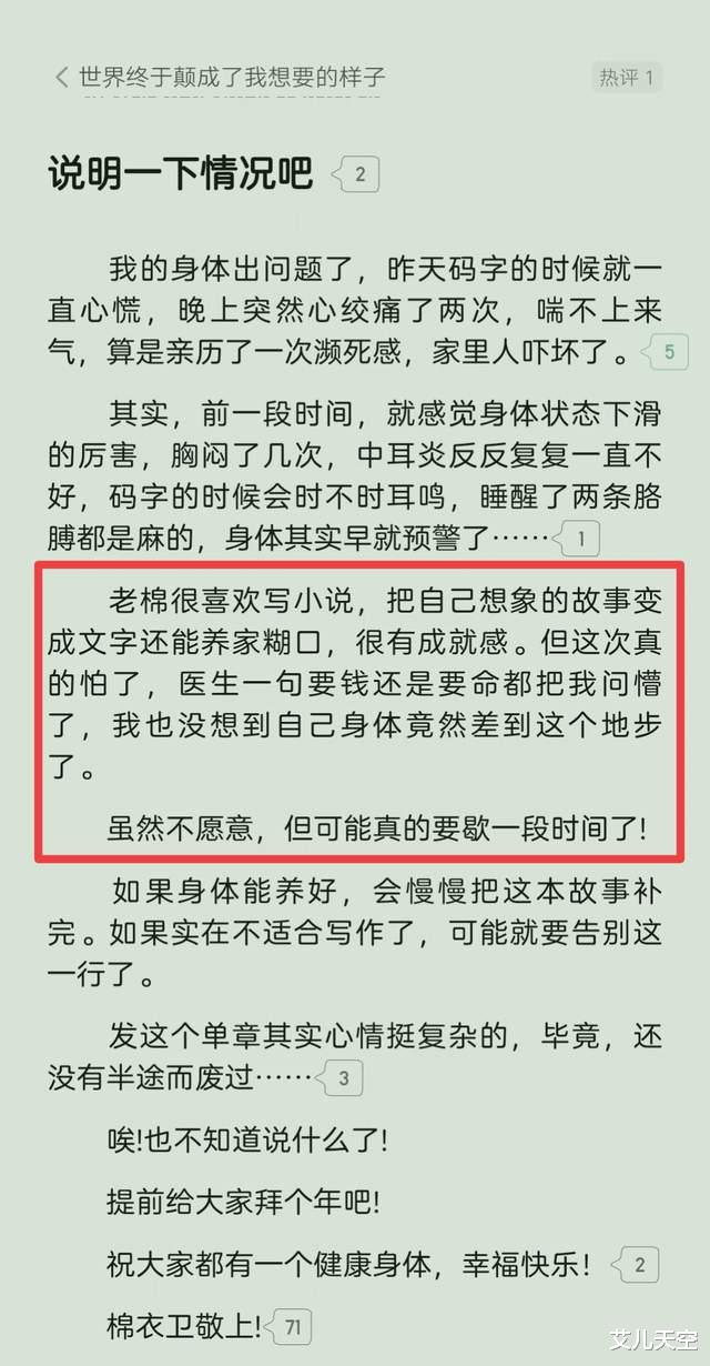 上个月26号的时候,作者因为审核压力直接放大纲结束了故事,只是后面又删了大纲捡起来了。