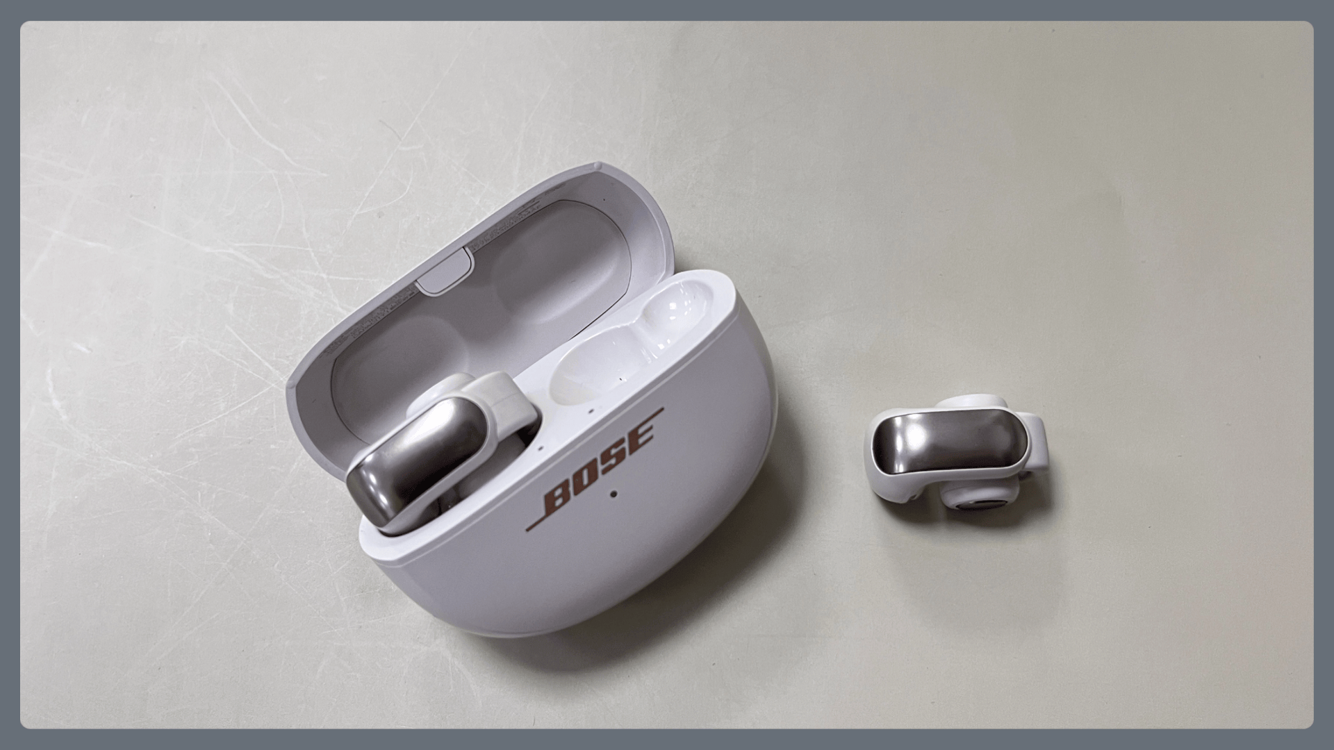 佩戴体验:BoseUltrra耳机盒采用的是手感漆材质,不容易沾指纹,外观设计简约很有现代感,颜值高。佩戴上,耳夹采用的是在C形夹的基础上,增加一段长条板,多了一个支撑点,佩戴更加稳定,即便在长跑、跳绳等剧烈运动中也不易掉落。但耳夹重量偏重,长时间戴疲劳感明显。