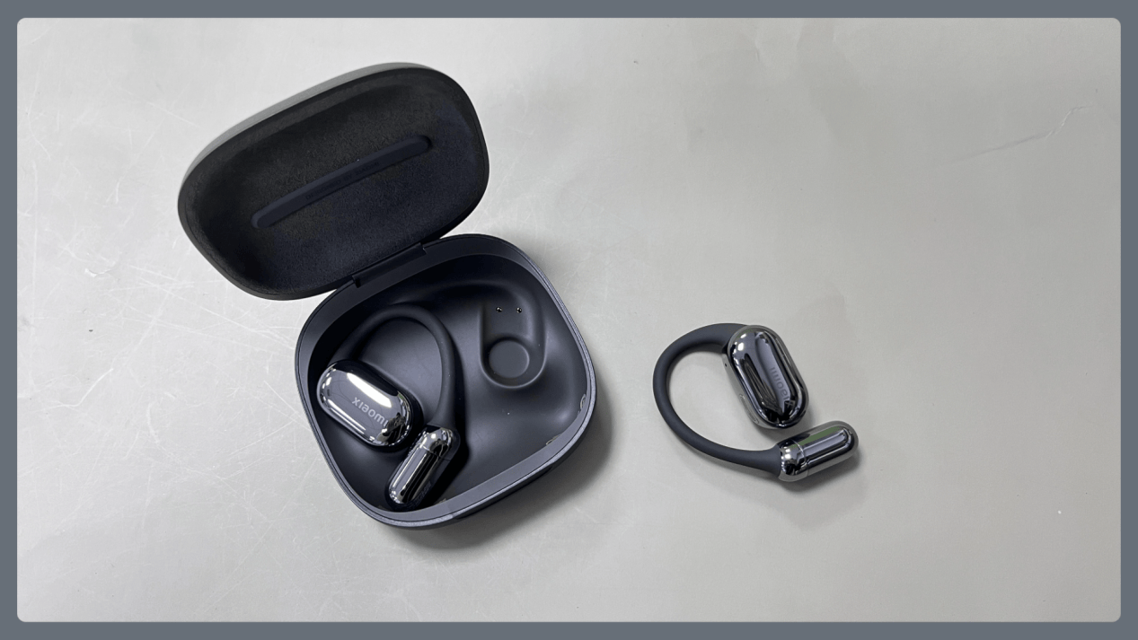 佩戴体验:小米开放式耳机Pro耳机盒相较于上一代有很大的优化,从长条形变成了更方便携带的方形设计。耳机盒外壳麂皮材质,手感细腻,质感更高级。佩戴方面,单耳约10g,重量不算轻,但耳挂材质柔软、贴合度不错,长时间戴也不会有明显压感。不过需要注意,耳朵偏小的女生可能会出现不太稳、容易掉的情况。