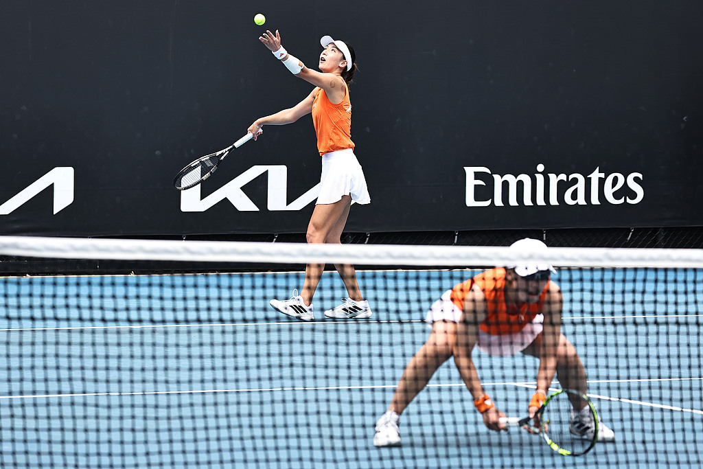 除了单打比赛,王欣瑜与郑赛赛搭档出战女双首轮(2号球场第三场),两人配合默契,需加强网前截击与底线衔接,冲击下一轮。