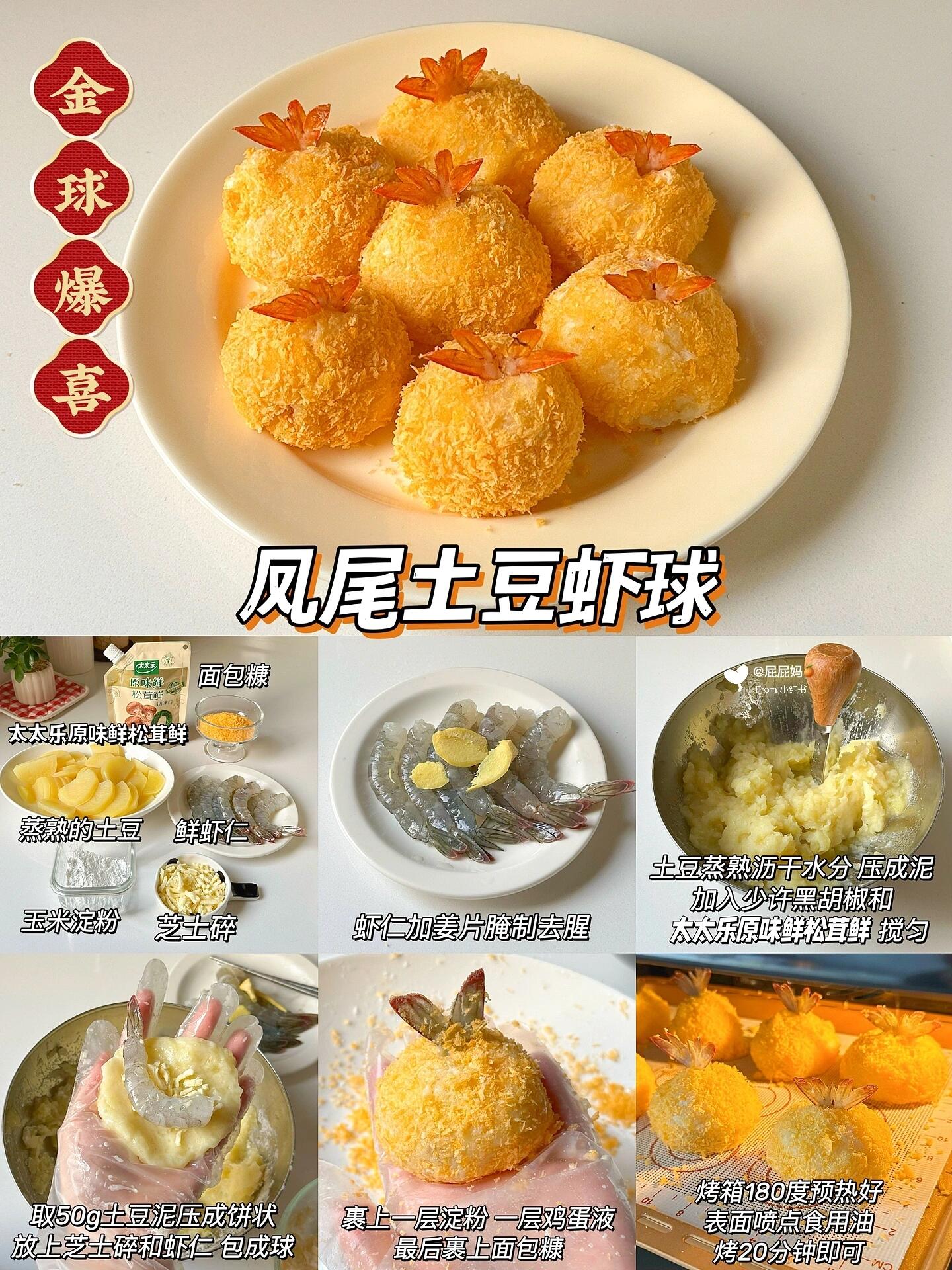 • 寓意:金黄虾球像“金球”,虾尾像“凤尾”,象征“金玉满堂,喜事连连”!