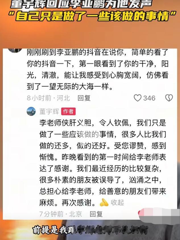 因董宇辉捐款后要求保密,引发了舆论抨击,看到此情况,李亚鹏再也坐不住了。