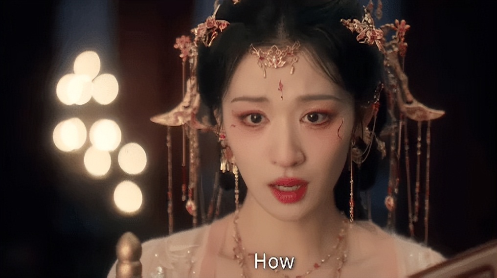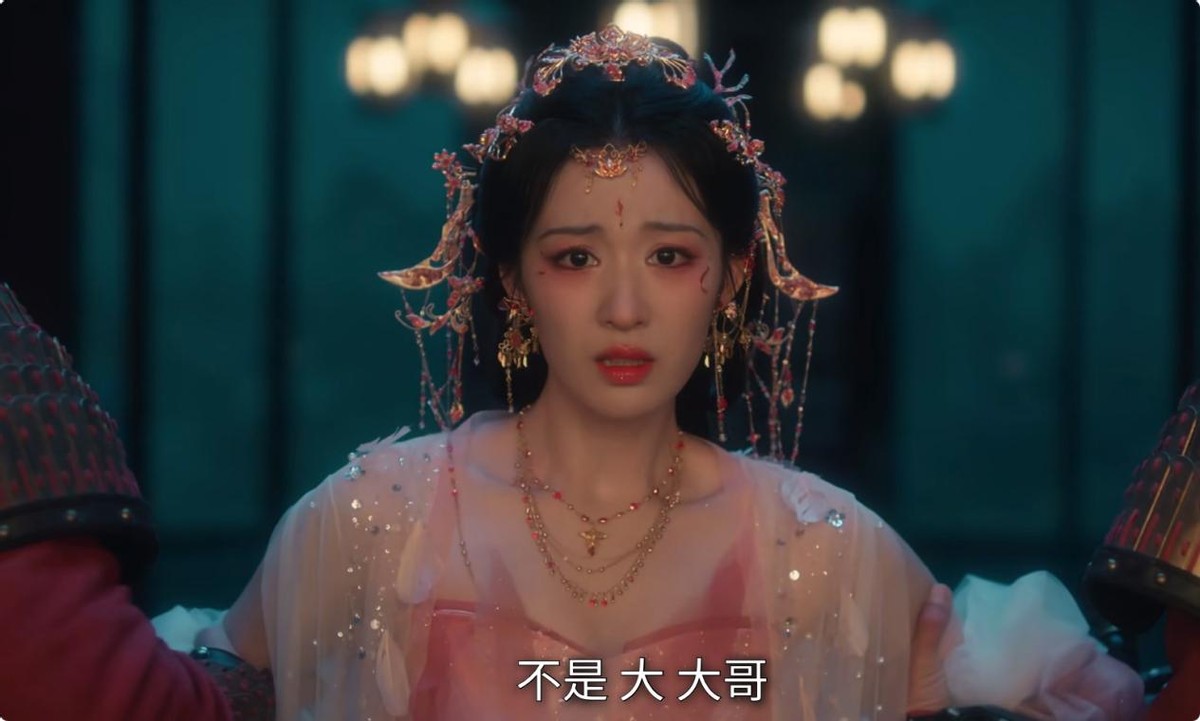 宫廷妆造时,红衣张扬、眉眼锋利,眼尾微微上扬,自带一种“不好惹”的妖妃气场,一抬眼就有故事感。