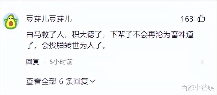 事情发布到网上后,不少网友都对白马的离世感到惋惜,有网友表示,白马救了人,这辈子积了大德,希望它下辈子可以有一个好的出路。