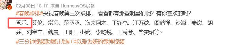 反倒是在彩排里出现的管乐,因为之前做的奇葩事,已经被网友给抵制上春晚了。