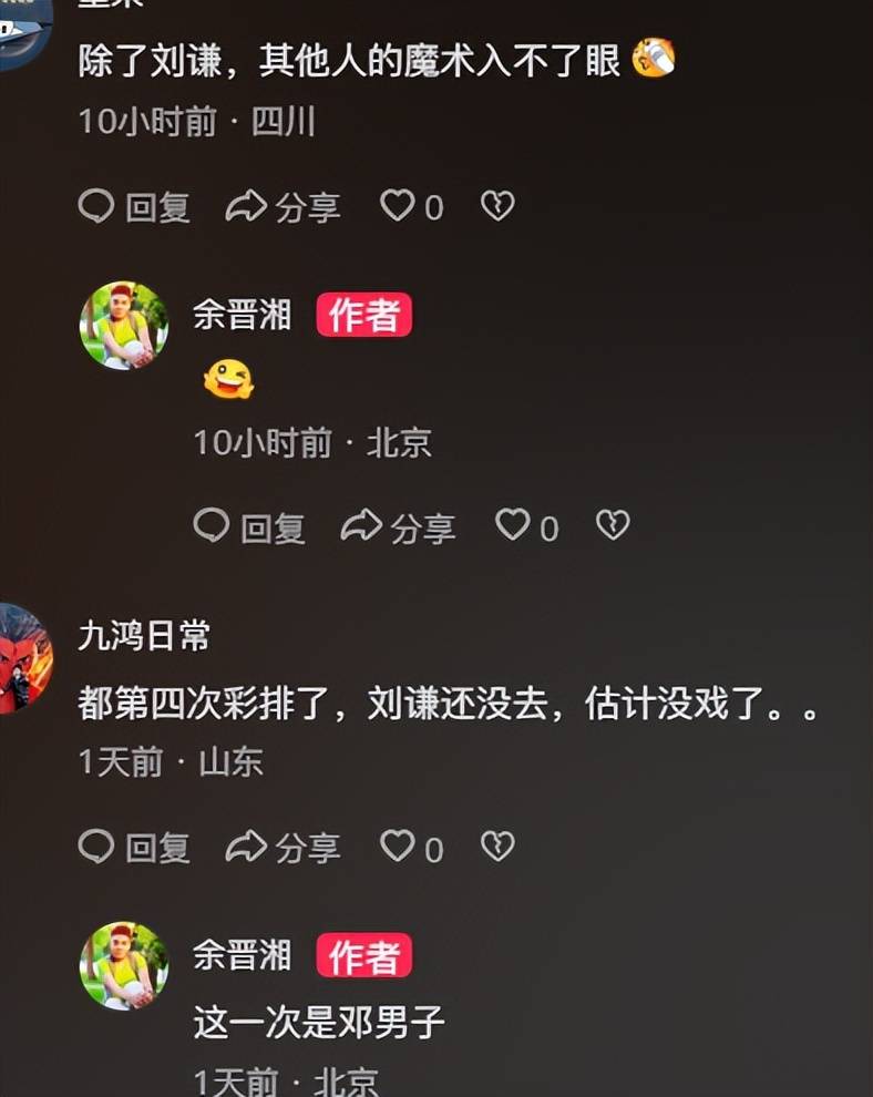 有圈内人余晋湘晒出多年前和刘谦的合照,带头表达对他不上春晚的惋惜,评论区也是惋惜一片,觉得还是刘谦的魔术更有记忆点。