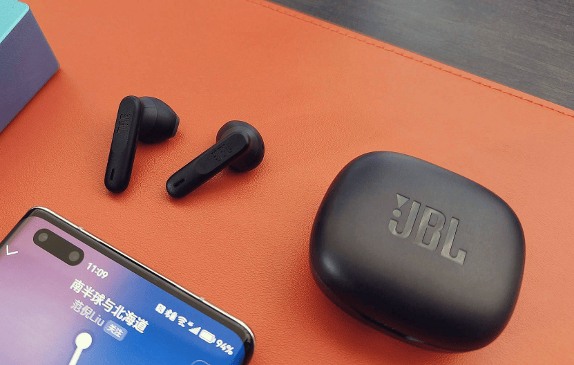 耳机单只重量为 3.8 克,整体较为轻盈,长时间佩戴不会有明显负担,适合日常通勤或办公使用。不过,由于结构设计偏轻,佩戴时的稳固性表现一般,剧烈活动中可能会出现松动。外壳采用磨砂处理,手感细腻,外观简洁,中部配有 JBL 标志,具有一定品牌识别度。