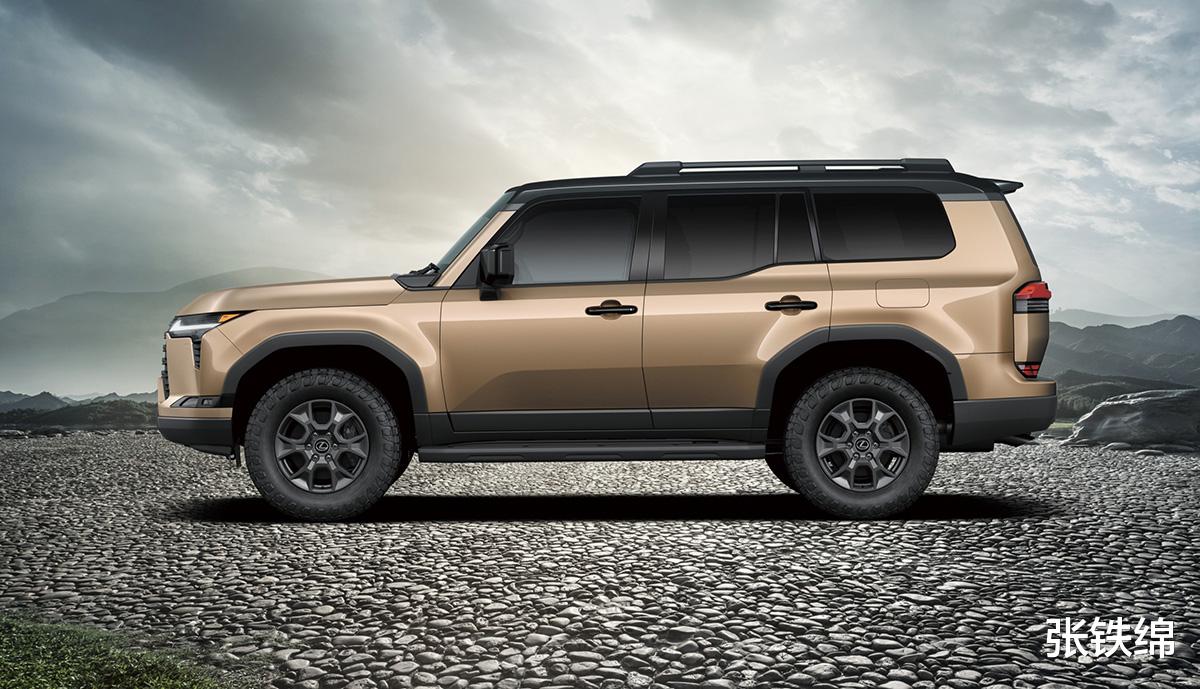 车身侧面部分的整体造型和普拉多基本一致,整体轮廓很硬朗,车窗下部使用了前低后高式的线条,隆起的翼子板上带有黑色的大轮眉。尺寸方面,新车的长宽高分别为4960(4970)/1980(2000)/1925(1935)mm,轴距为2850mm。