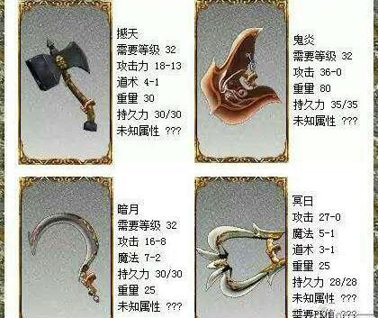 可惜这份威慑力,大多停留在传说层面。号称 “红名屠龙” 的鬼炎,拥有 36-0 的恐怖攻击下限,理论上是战士终极凶器,却因爆率低到离谱,全服没几人见过真身,最终沦为 “只闻其名不见其形” 的传说;法师专属的暗月,魔法属性仅 5-1,对于依赖上限爆发的法师来说,这点稳定伤害聊胜于无,终究无人问津;道士的撼天更显尴尬,道士本就不以 PK 见长,即便武器能堆诅咒,也难有发挥空间,最后只能躺在背包里积灰。三把凶器或稀有到绝迹,或适配性拉胯,所谓 “四大”,实则名不副实。