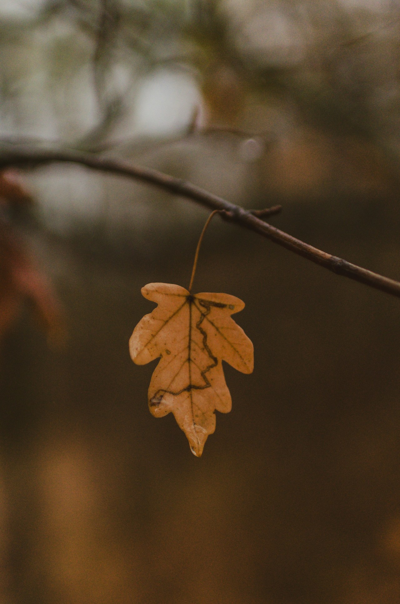 贴地拍摄:将相机或手机尽可能靠近地面,与落叶处于同一水平线。这个视角会让平凡的秋叶显得高大,背景也被简化,主体格外突出。