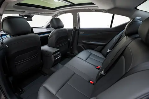 内饰风格借鉴智能家居的设计思路,悬浮式中控屏成为视觉中心,环抱式座舱布局营造出“家庭客厅”般的亲切感。车内可触面积达90%的软质包覆,用料细腻,触感柔软,甚至超越部分豪华车型。低饱和度的内饰配色(如蓝白、黑红、黑灰)营造出柔和纯净的驾乘环境。值得一提的是,天籁初次在行业内提出“零甲醛健康座舱”标准,严格控制车内气味,尤其关注母婴等敏感人群的健康需求。分段式全景天窗配备无级电动遮阳帘,开阔通透的同时,也提升了车内的呼吸感。