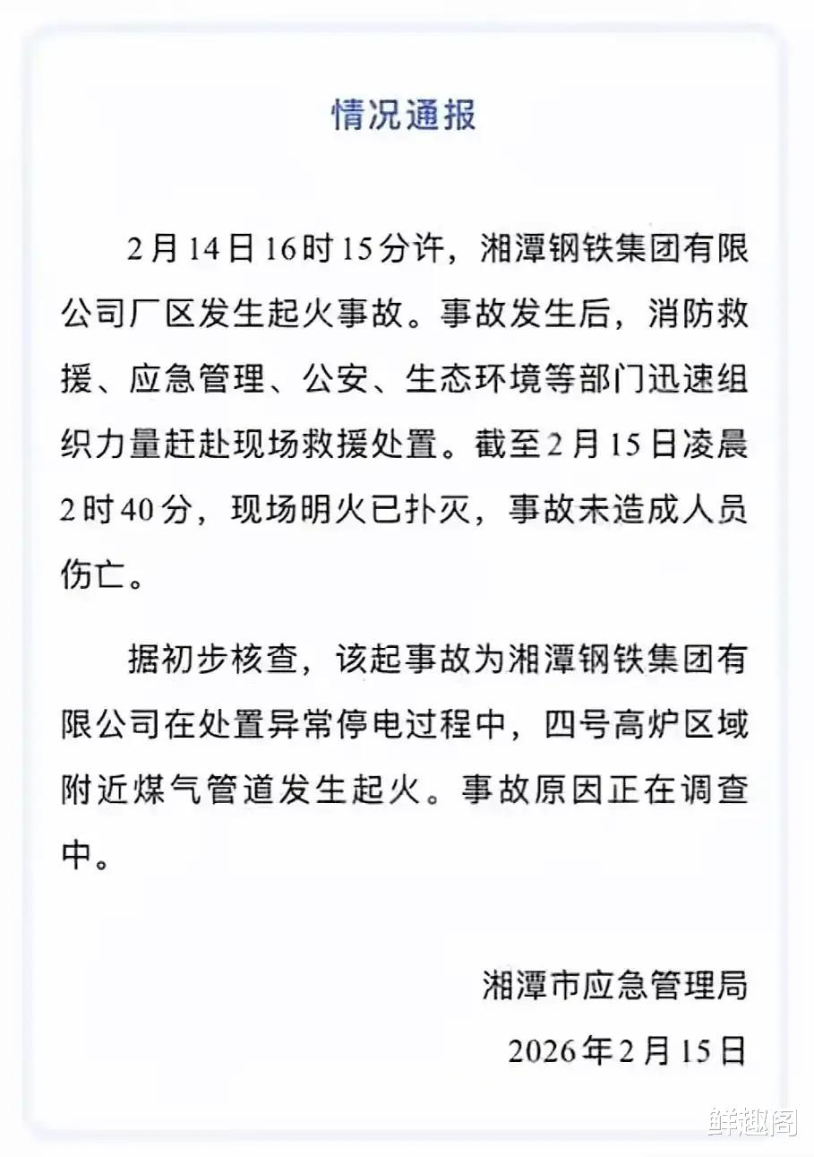 2025年2月14日下午,湖南省湘潭市迎来惊魂一刻。位于岳塘区的湘潭钢铁集团有限公司厂区,突然发生重大火灾事故,现场一度传出巨响,火光冲天,浓烟滚滚。截至2月15日凌晨,这场骇人大火持续燃烧了超过10个小时才被扑灭。关于事故的具体原因,以及人员伤亡情况,在刚刚不久之前发布的官方通报给出了初步答案。