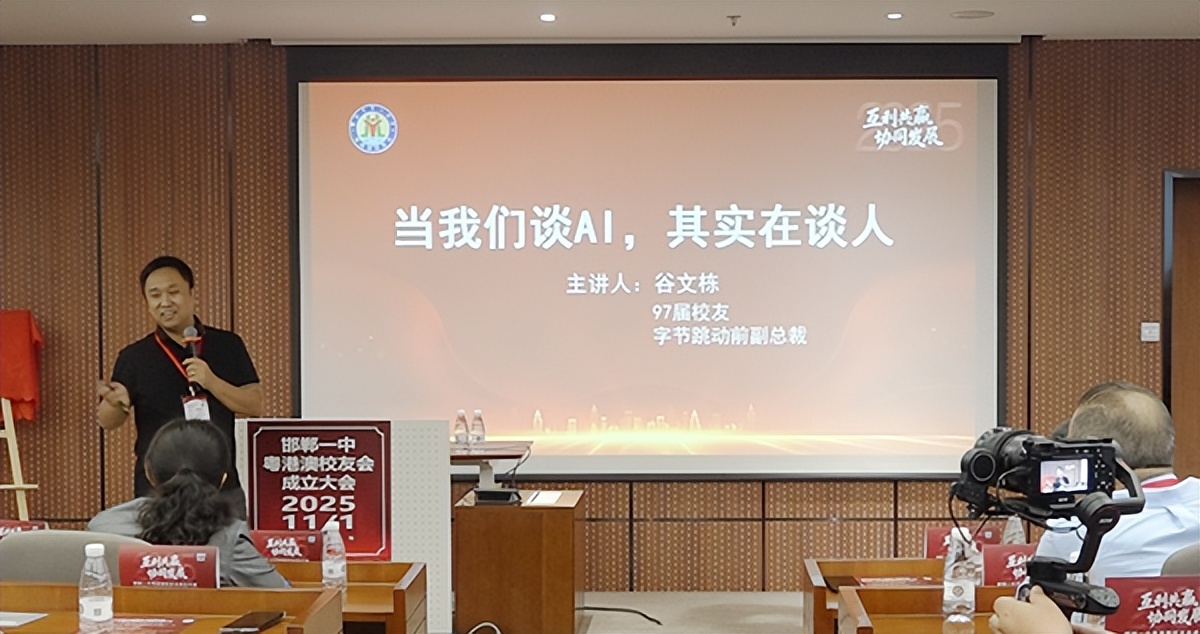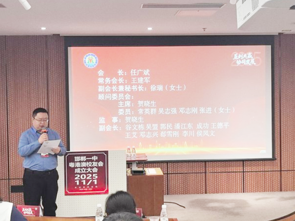 2025年11月1日,以“互利共赢 协同发展”为主题的“五位一体思路下粤冀双飞地研讨会暨邯郸一中粤港澳校友会成立大会”在深圳成功举行。此次活动在京津冀协同发展与粤港澳大湾区建设两大国家战略交汇的背景下,聚焦粤冀两地合作新机遇与校友情谊联结,吸引了近100名政府代表、校方领导、行业专家及粤港澳地区校友精英共聚一堂。大会由校友郄雪刚主持。
