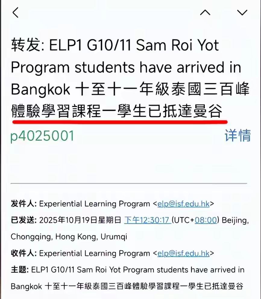 在今年的10月19号,杨威收到了香港学校发的一封邮件,通知他杨阳洋已经安全到达了泰国。香港学校这次选择泰国作为学生学习课程,家长就只收到了一封邮件,这很难不让家长不担心。