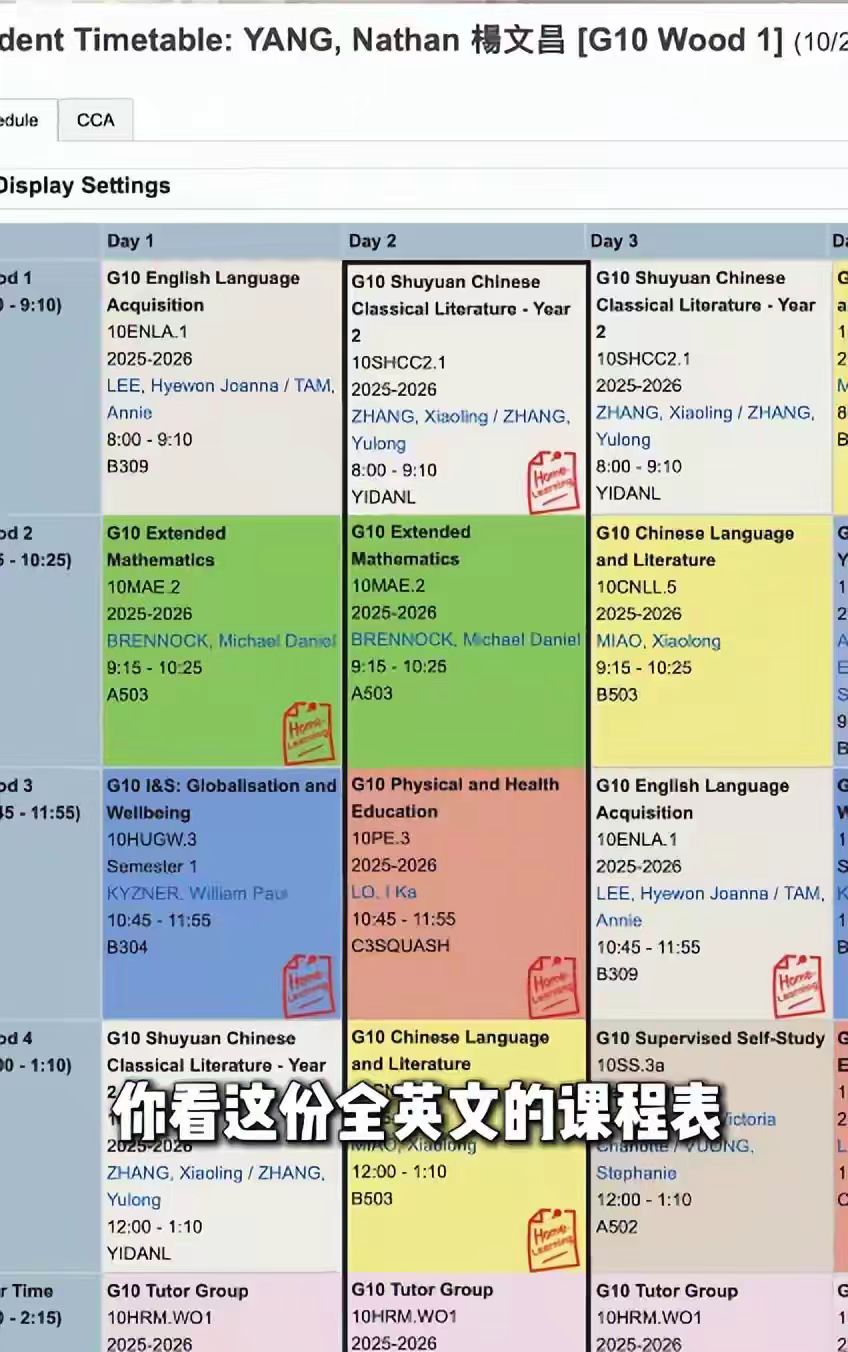 杨威说现在他感觉自己对儿子的规划路越来越模糊了,不知道怎么帮他规划了。儿子的课程表全都是英文,他一个都看不懂。现在唯一能帮到儿子的就是经济条件上给予最大的帮助,不拖他后腿。
