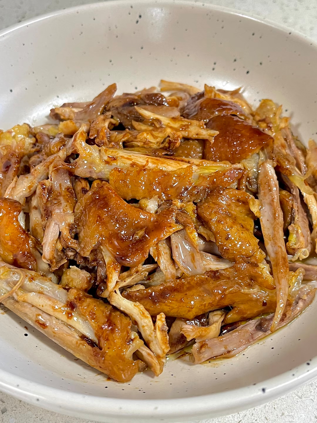 戴上手套开始暴力美学时刻!先撕下两条金灿灿的鸡腿,看那油亮的鸡皮在灯光下泛着琥珀色光芒。鸡胸肉顺着纹理撕成条状,混着流出的肉汁在盘底汇成小溪。这时候一定要配碗冰镇酸梅汤,这是解腻的黄金搭档。