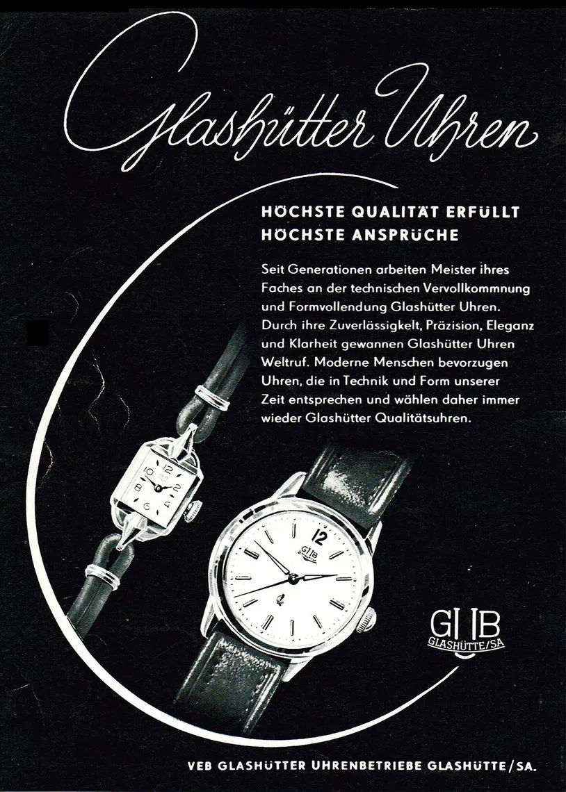 20世纪的两场世界大战给格拉苏蒂制表业带来了沉重打击。二战末期,格拉苏蒂因被认定为纳粹军需钟表及仪表生产基地,遭到盟军猛烈轰炸,许多工厂被夷为平地。战后,苏联军队又拆迁了多数残存的制表设备运往苏联,使当地制表业雪上加霜。战后德国分裂,格拉苏蒂位于东德境内。1951年,东德当局将当地所有制表公司合并为一家国营企业"VEB Glashütter Uhrenbetriebe"(GUB)。